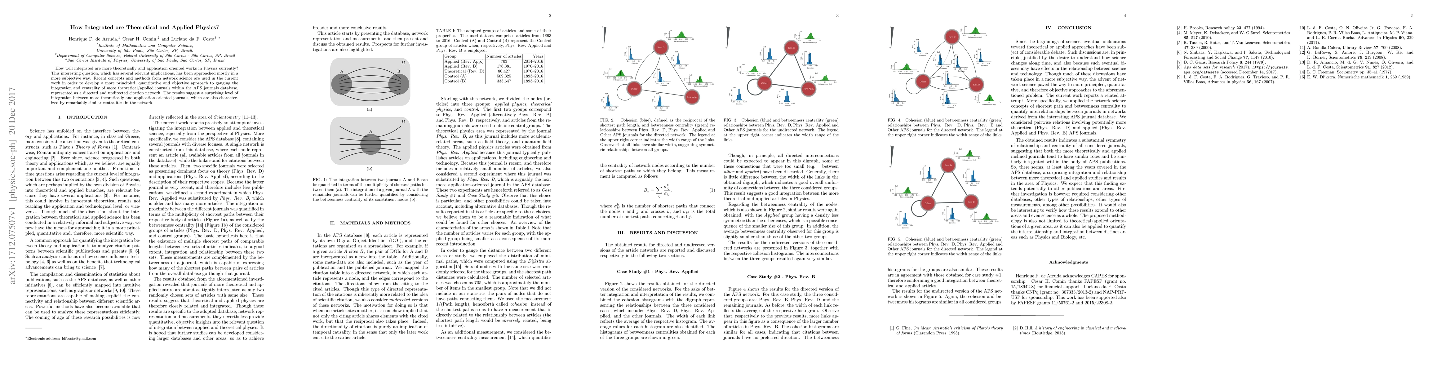 How well integrated are more theoretically and application oriented works in Physics currently? This interesting question, which has several relevant implications, has been approached mostly in a more subjective way. Recent concepts and methods from network science are used in the current work in order to develop a more principled, quantitative and objective approach to gauging the integration and centrality of more theoretical/applied journals within the APS journals database, represented as a directed and undirected citation network. The results suggest a surprising level of integration between more theoretically and application oriented journals, which are also characterized by remarkably similar centralities in the network.