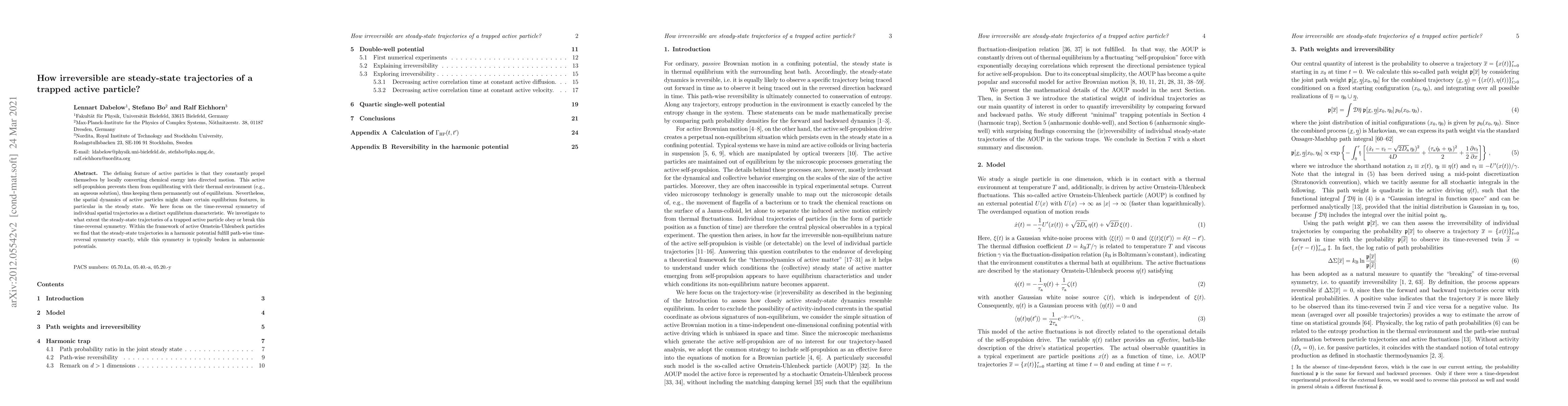 This paper examines the time-reversal symmetry of steady-state trajectories for trapped active particles, finding exact symmetry in harmonic potentials but symmetry breaking in anharmonic potentials. Active particles maintain non-equilibrium states due to their self-propulsion, yet their spatial dynamics can exhibit equilibrium-like features.