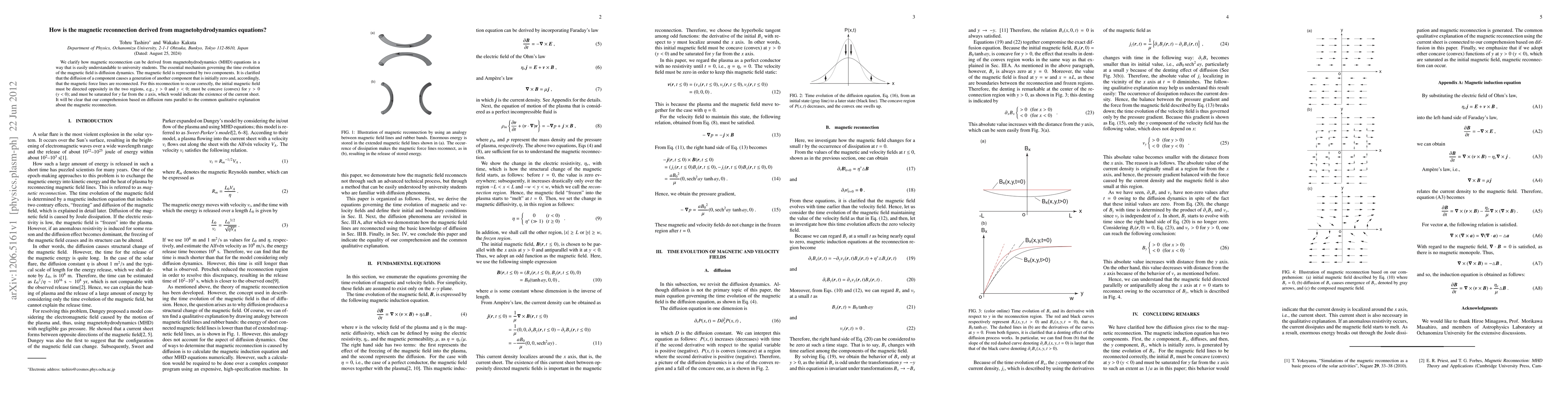 We clarify how magnetic reconnection can be derived from magnetohydrodynamics (MHD) equations in a way that is easily understandable to university students. The essential mechanism governing the time evolution of the magnetic field is diffusion dynamics. The magnetic field is represented by two components. It is clarified that the diffusion of a component causes a generation of another component that is initially zero and, accordingly, that the magnetic force lines are reconnected. For this reconnection to occur correctly, the initial magnetic field must be directed oppositely in the two regions, e.g., $y>0$ and $y<0$; must be concave (convex) for $y>0$ ($y<0$); and must be saturated for $y$ far from the x axis, which would indicate the existence of the current sheet. It will be clear that our comprehension based on diffusion runs parallel to the common qualitative explanation about the magnetic reconnection.