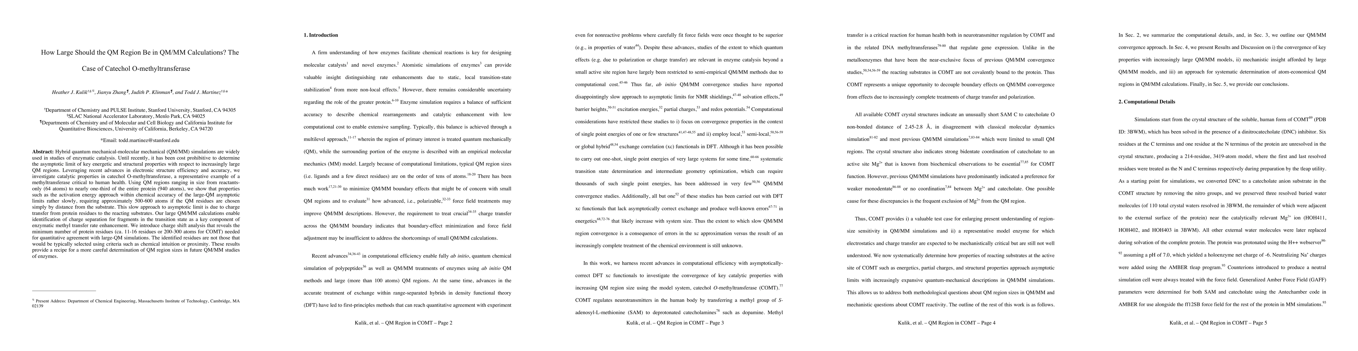 This study investigates the optimal size of the quantum mechanical (QM) region in QM/MM calculations for enzymatic catalysis using catechol O-methyltransferase as a model. It finds that properties like activation energy require approximately 500-600 atoms for convergence, revealing that charge transfer and not just proximity determines the necessary QM region size.