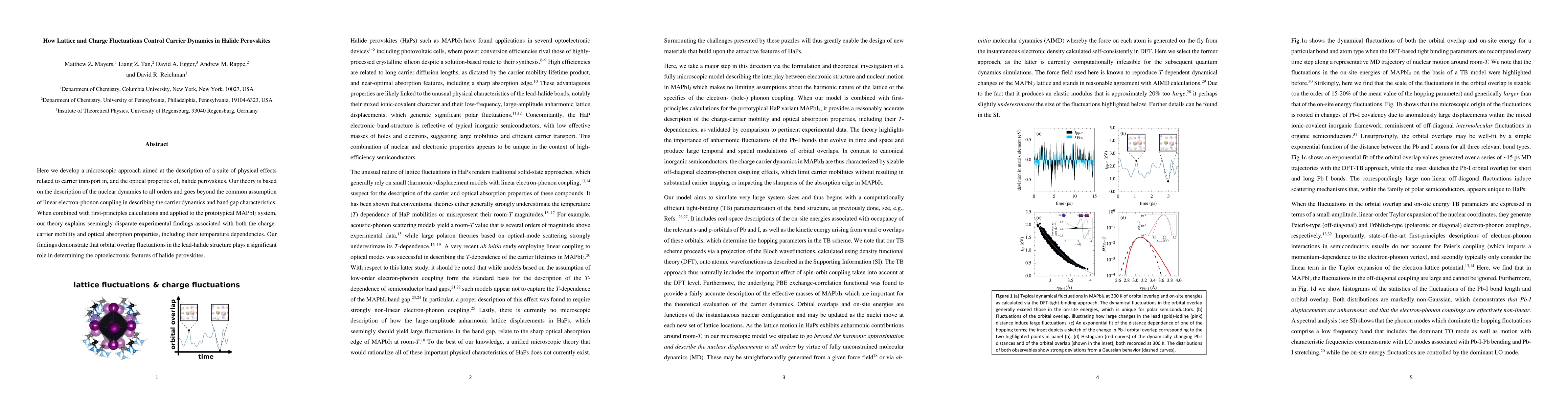 The paper introduces a computationally efficient DFT-TB scheme combined with large-scale MD to allow for quantum-dynamical simulations of halide perovskites, naturally incorporating anharmonicity of nuclear motion and non-linear electron-phonon coupling.