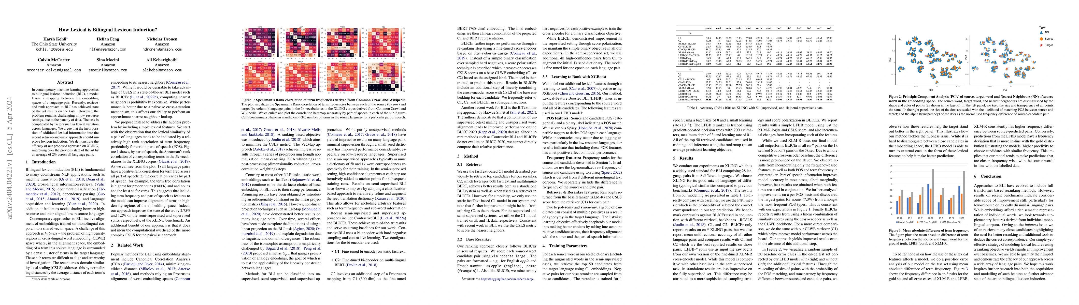 This paper investigates enhancing bilingual lexicon induction (BLI) through incorporating additional lexical information into the retrieve-and-rank approach, achieving a 2% improvement over the previous state of the art on XLING, particularly in low-resource settings.