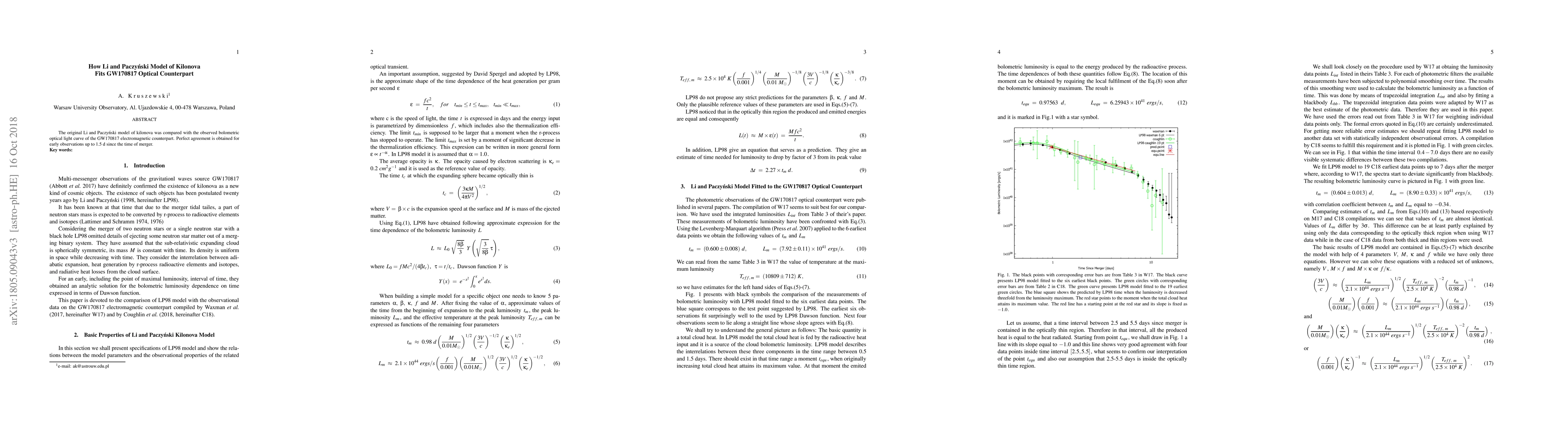 The original Li & Paczynski model of kilonova was compared with the observed bolometric optical light curve of the GW170817 electromagnetic counterpart. Perfect agreement is obtained for early observations up to 1.5 days since the time of merger.