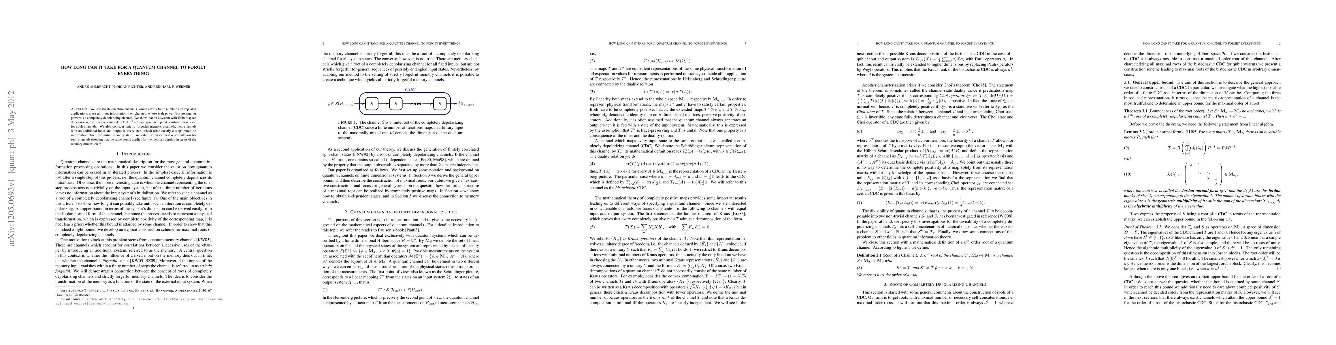 We investigate quantum channels, which after a finite number $k$ of repeated applications erase all input information, i.e., channels whose $k$-th power (but no smaller power) is a completely depolarizing channel. We show that on a system with Hilbert space dimension $d$, the order is bounded by $k\leq d^2-1$, and give an explicit construction scheme for such channels. We also consider strictly forgetful memory channels, i.e., channels with an additional input and output in every step, which after exactly $k$ steps retain no information about the initial memory state. We establish an explicit representation for such channels showing that the same bound applies for the memory depth $k$ in terms of the memory dimension $d$.