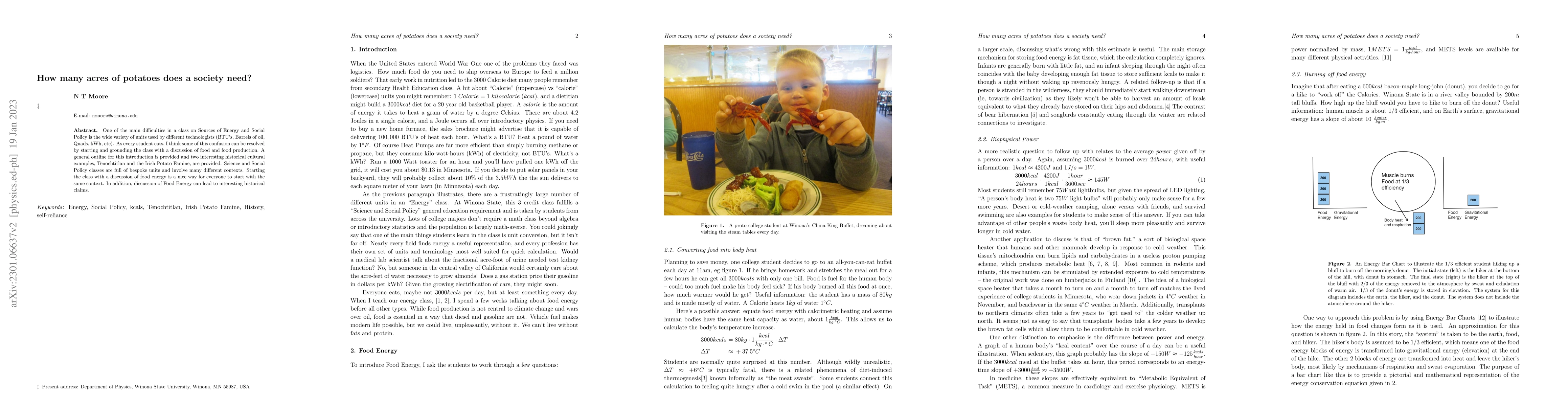 This paper proposes using food production, particularly potatoes, as a foundational unit to simplify the teaching of diverse energy measurement units in Sources of Energy and Social Policy classes. It uses historical examples like Tenochtitlan and the Irish Potato Famine to illustrate the practical and cultural significance of food energy.