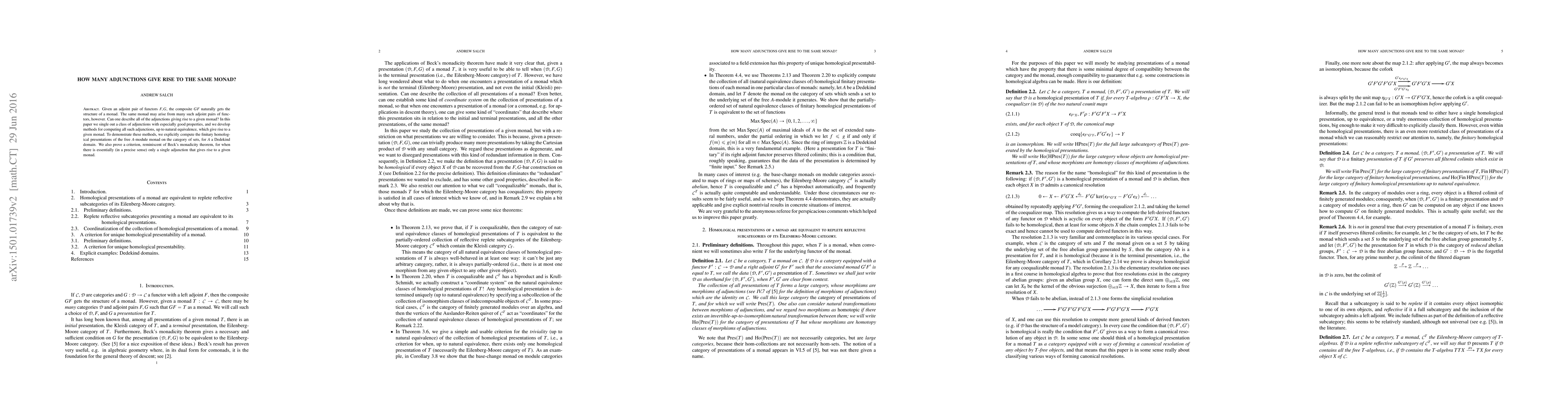This paper explores how multiple adjunctions can yield the same monad and develops methods to compute all such adjunctions up to natural equivalence. It also demonstrates these methods through the computation of finitary homological presentations for the free module monad over Dedekind domains and provides a criterion for when a monad has essentially a unique adjunction.