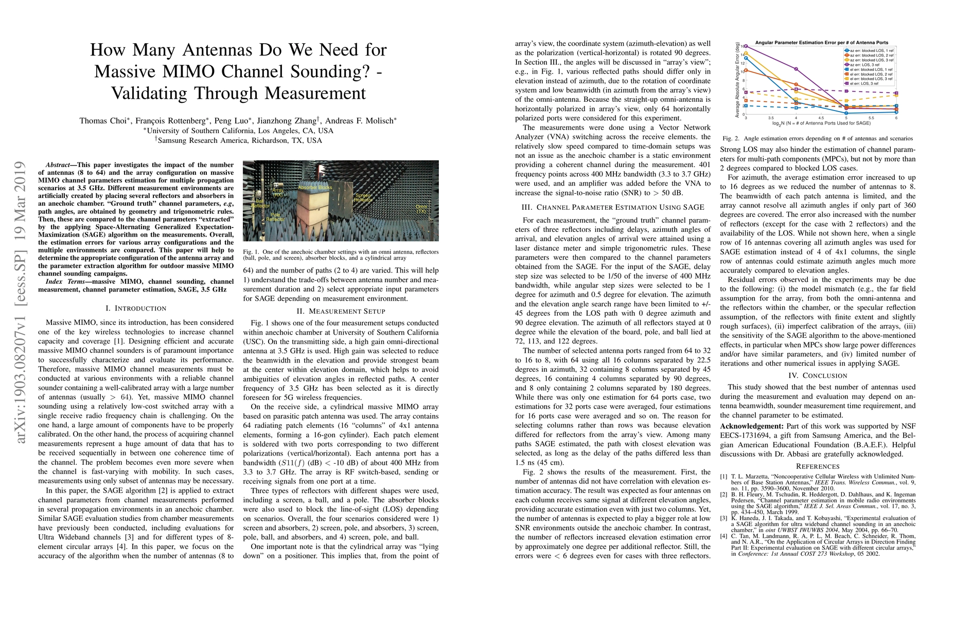 This paper investigates the impact of the number of antennas (8 to 64) and the array configuration on massive MIMO channel parameters estimation for multiple propagation scenarios at 3.5 GHz. Different measurement environments are artificially created by placing several reflectors and absorbers in an anechoic chamber. Ground truth channel parameters, e.g, path angles, are obtained by geometry and trigonometric rules. Then, these are compared to the channel parameters extracted by the applying Space-Alternating Generalized Expectation-Maximization (SAGE) algorithm on the measurements. Overall, the estimation errors for various array configurations and the multiple environments are compared. This paper will help to determine the appropriate configuration of the antenna array and the parameter extraction algorithm for outdoor massive MIMO channel sounding campaigns.