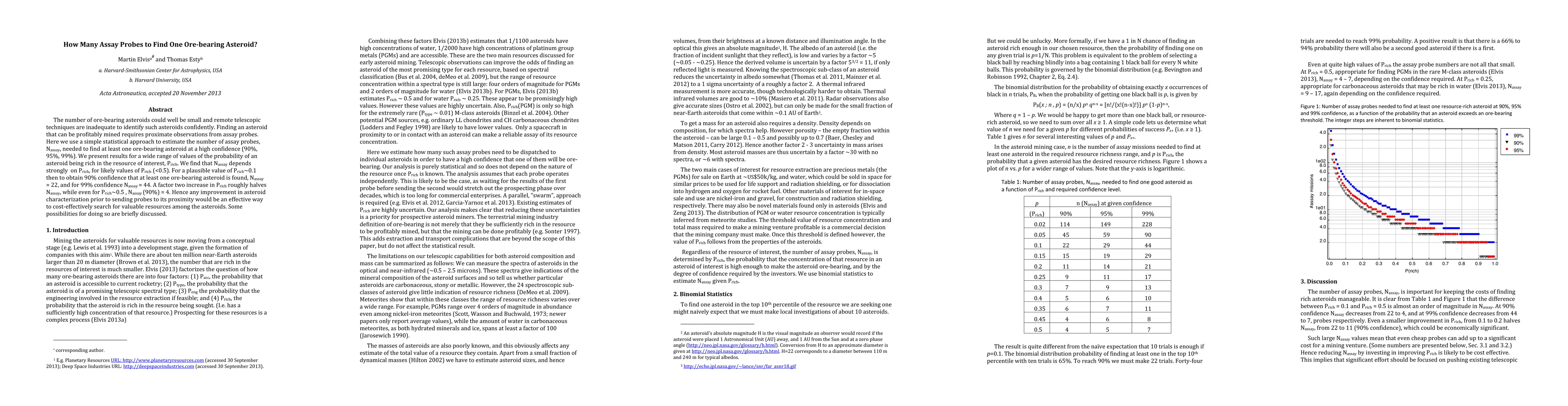 This paper estimates the number of assay probes required to find at least one ore-bearing asteroid with high confidence, finding that Nassay strongly depends on the probability Prich of an asteroid being resource-rich. For Prich~0.1, it requires 22 probes for 90% confidence and 44 for 99% confidence, highlighting the importance of pre-probe characterization to reduce costs.