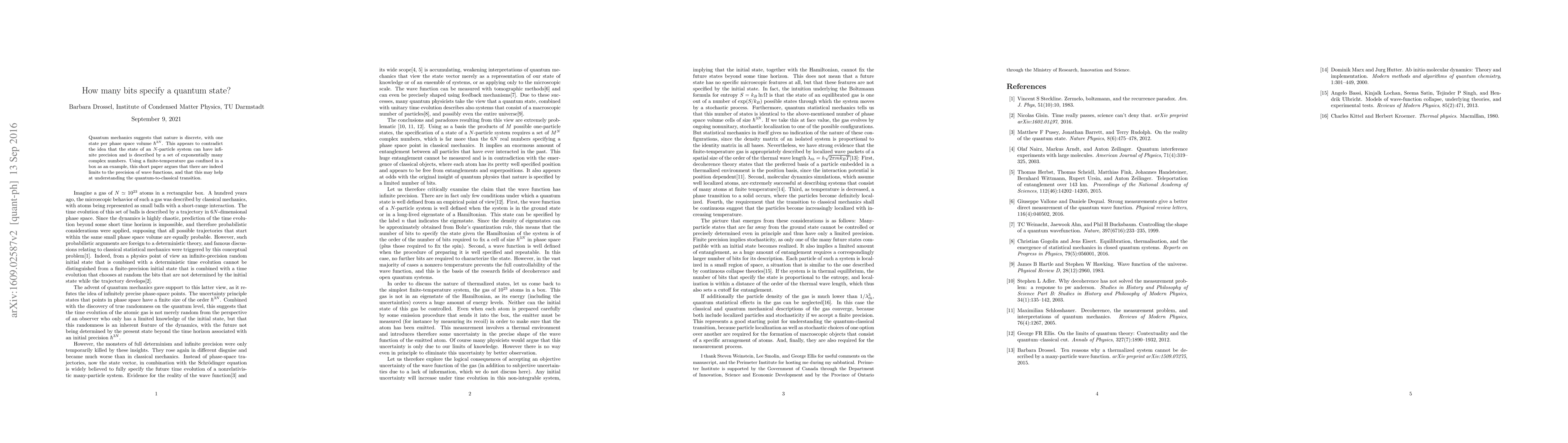 A study explores how many bits determine a quantum state in an N-particle system, suggesting that there are limits to precision due to finite temperature and confinement effects.