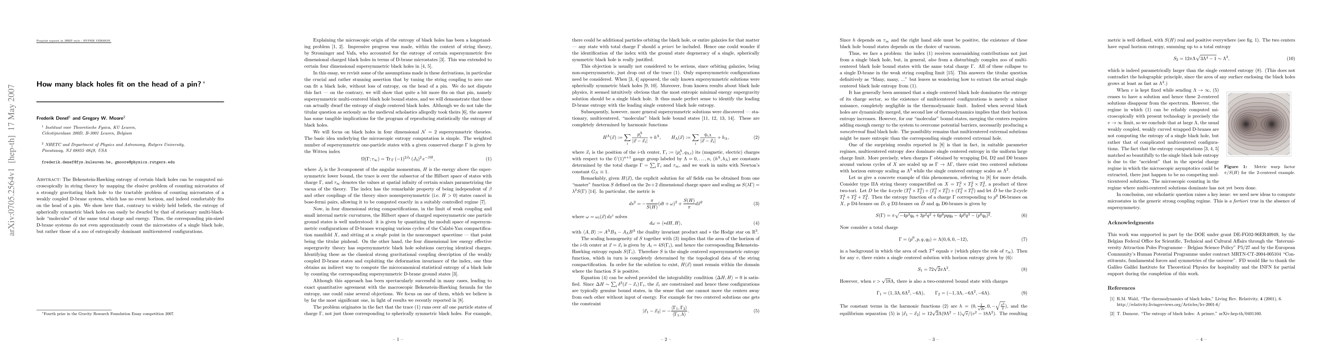 The Bekenstein-Hawking entropy of certain black holes can be computed microscopically in string theory by mapping the elusive problem of counting microstates of a strongly gravitating black hole to the tractable problem of counting microstates of a weakly coupled D-brane system, which has no event horizon, and indeed comfortably fits on the head of a pin. We show here that, contrary to widely held beliefs, the entropy of spherically symmetric black holes can easily be dwarfed by that of stationary multi-black-hole ``molecules'' of the same total charge and energy. Thus, the corresponding pin-sized D-brane systems do not even approximately count the microstates of a single black hole, but rather those of a zoo of entropically dominant multicentered configurations.
