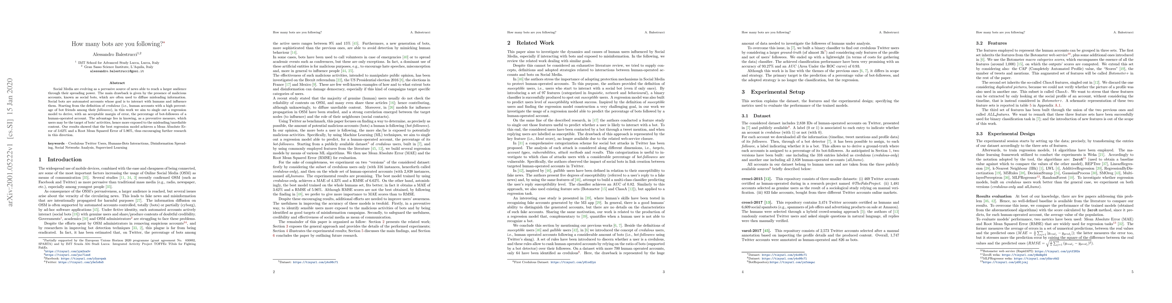 Social Media are evolving as a pervasive source of news able to reach a larger audience through their spreading power. The main drawback is given by the presence of malicious accounts, known as social bots, which are often used to diffuse misleading information. Social bots are automated accounts whose goal is to interact with humans and influence them. Starting from the definition of credulous (i.e., human accounts with a high percentage of bot friends among their followees, in this work we aim to single out a regression model to derive, with an acceptable margin of error, the percentage of bot-followees of a human-operated account. The advantage lies in knowing, as a preventive measure, which users may be the target of bots' activities, hence more exposed to the misleading/unreliable content. Our results showed that the best regression model achieves a Mean Absolute Error of 3.62% and a Root Mean Squared Error of 5.96%, thus encouraging further research in this direction.
