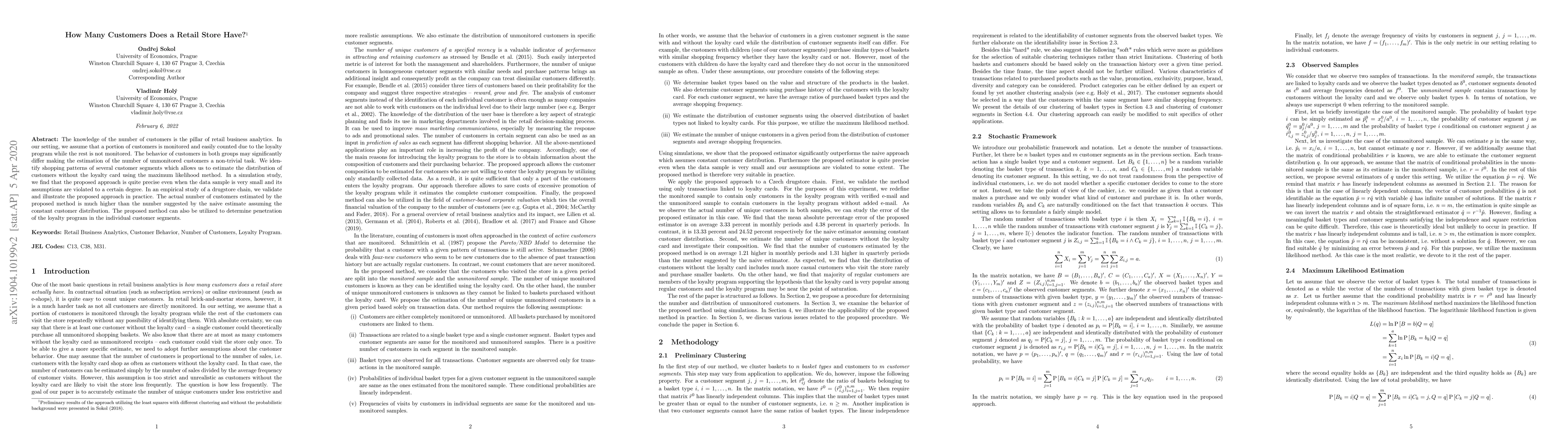 The knowledge of the number of customers is the pillar of retail business analytics. In our setting, we assume that a portion of customers is monitored and easily counted due to the loyalty program while the rest is not monitored. The behavior of customers in both groups may significantly differ making the estimation of the number of unmonitored customers a non-trivial task. We identify shopping patterns of several customer segments which allows us to estimate the distribution of customers without the loyalty card using the maximum likelihood method. In a simulation study, we find that the proposed approach is quite precise even when the data sample is very small and its assumptions are violated to a certain degree. In an empirical study of a drugstore chain, we validate and illustrate the proposed approach in practice. The actual number of customers estimated by the proposed method is much higher than the number suggested by the naive estimate assuming the constant customer distribution. The proposed method can also be utilized to determine penetration of the loyalty program in the individual customer segments.
