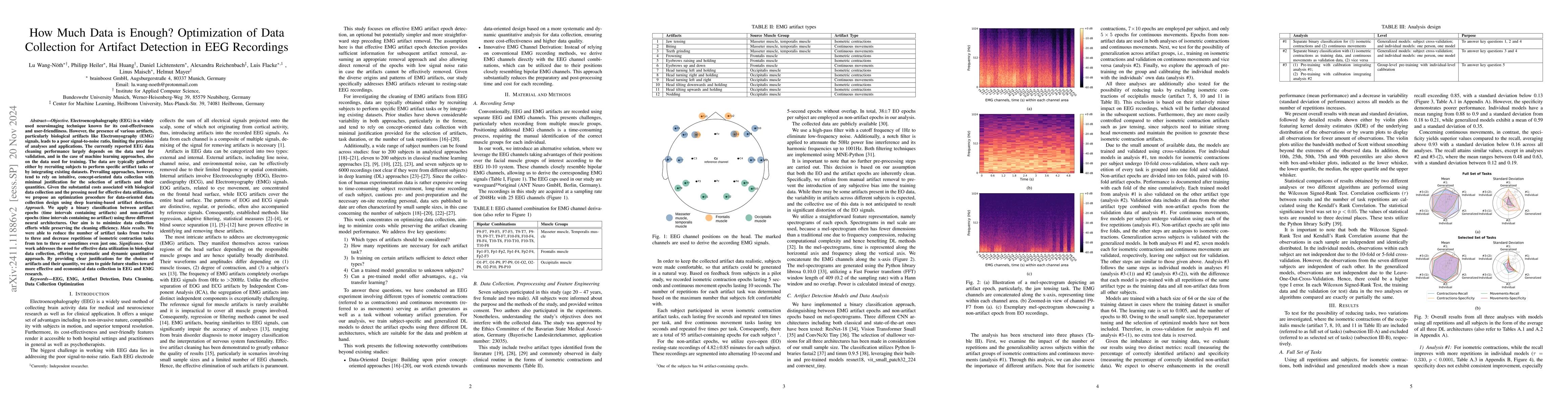 The paper proposes an optimization procedure for data collection in EEG recordings to enhance artifact detection efficiency using deep learning. By applying binary classification, it reduces the required number of artifact tasks from twelve to three, minimizing data collection efforts while maintaining cleaning efficacy.