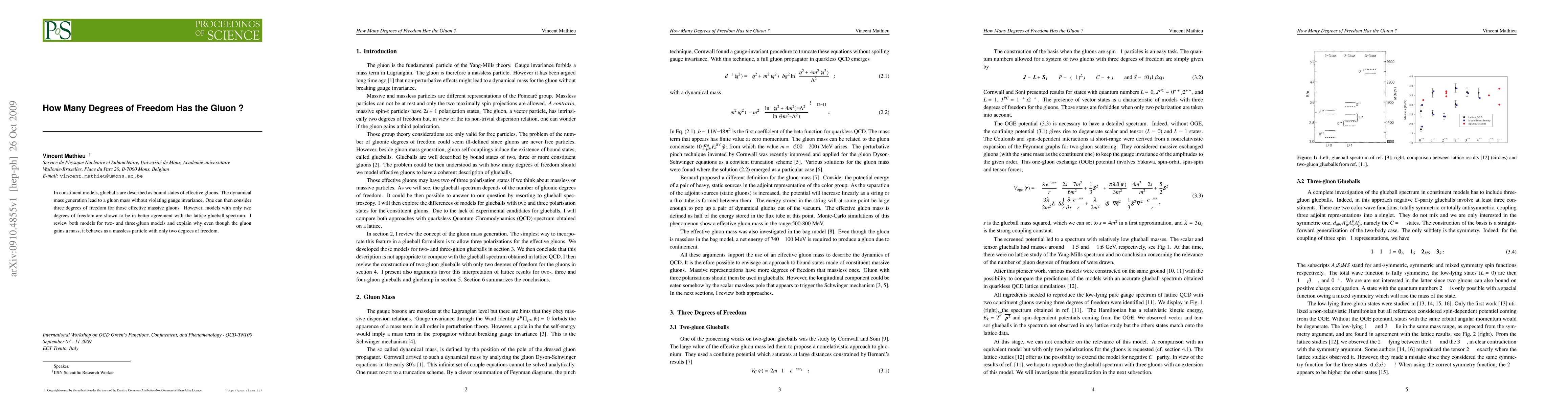 In constituent models, glueballs are described as bound states of effective gluons. The dynamical mass generation lead to a gluon mass without violating gauge invariance. One can then consider three degrees of freedom for those effective massive gluons. However, models with only two degrees of freedom are shown to be in better agreement with the lattice glueball spectrum. I review both models for two- and three-gluon models and explain why even though the gluon gains a mass, it behaves as a massless particle with only two degrees of freedom.
