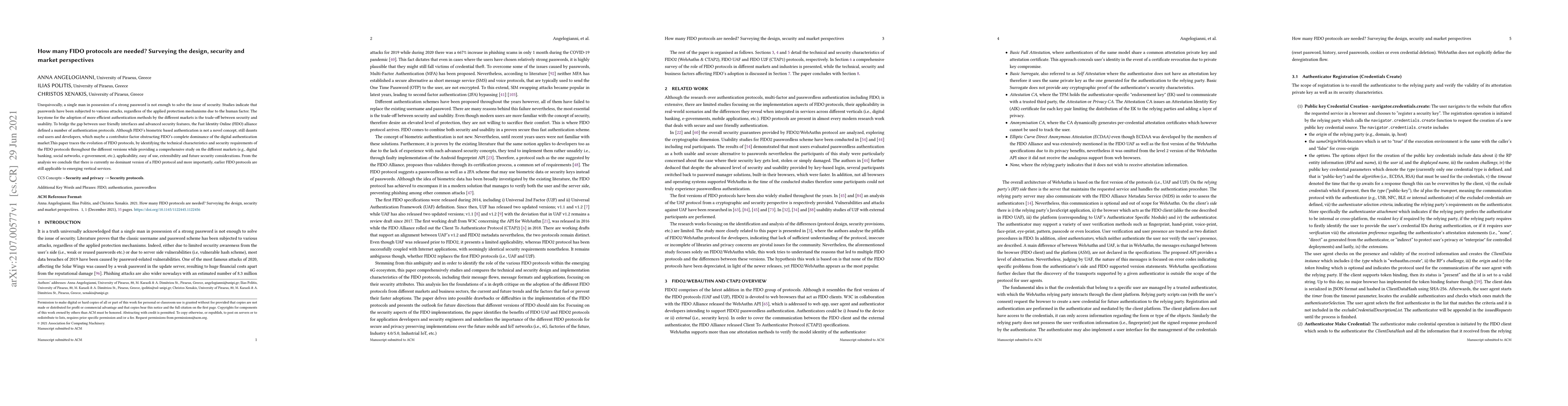 This paper surveys the evolution, security, and market perspectives of FIDO protocols, highlighting the trade-off between security and usability in various markets. It concludes that no single FIDO protocol dominates, and earlier versions remain relevant for emerging services.