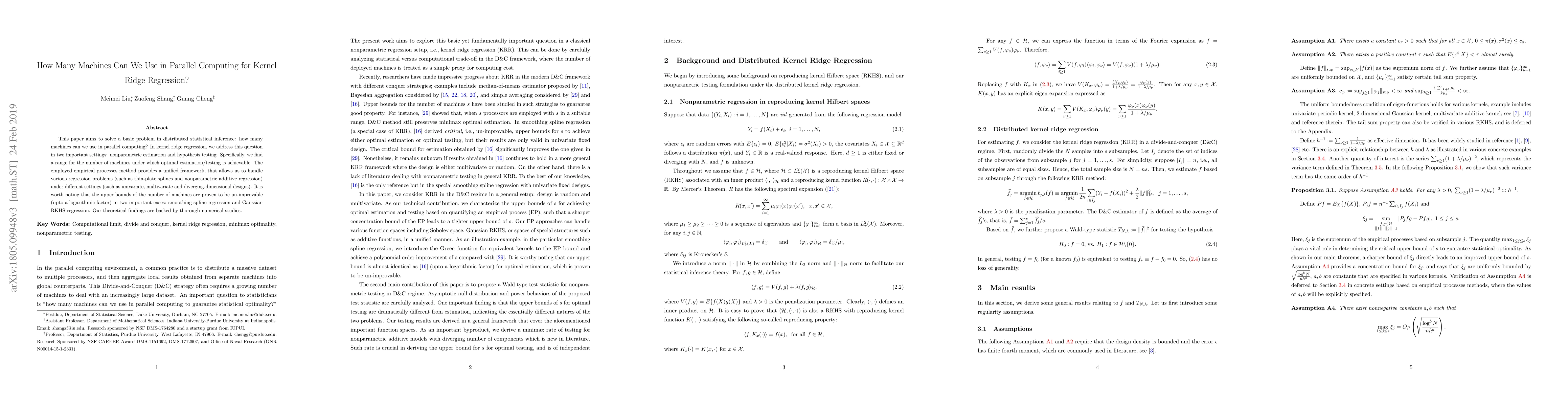 This paper investigates the optimal number of machines for parallel computing in kernel ridge regression, focusing on nonparametric estimation and hypothesis testing. It establishes a range for the number of machines that allows for optimal performance, supported by empirical processes and backed by numerical studies.