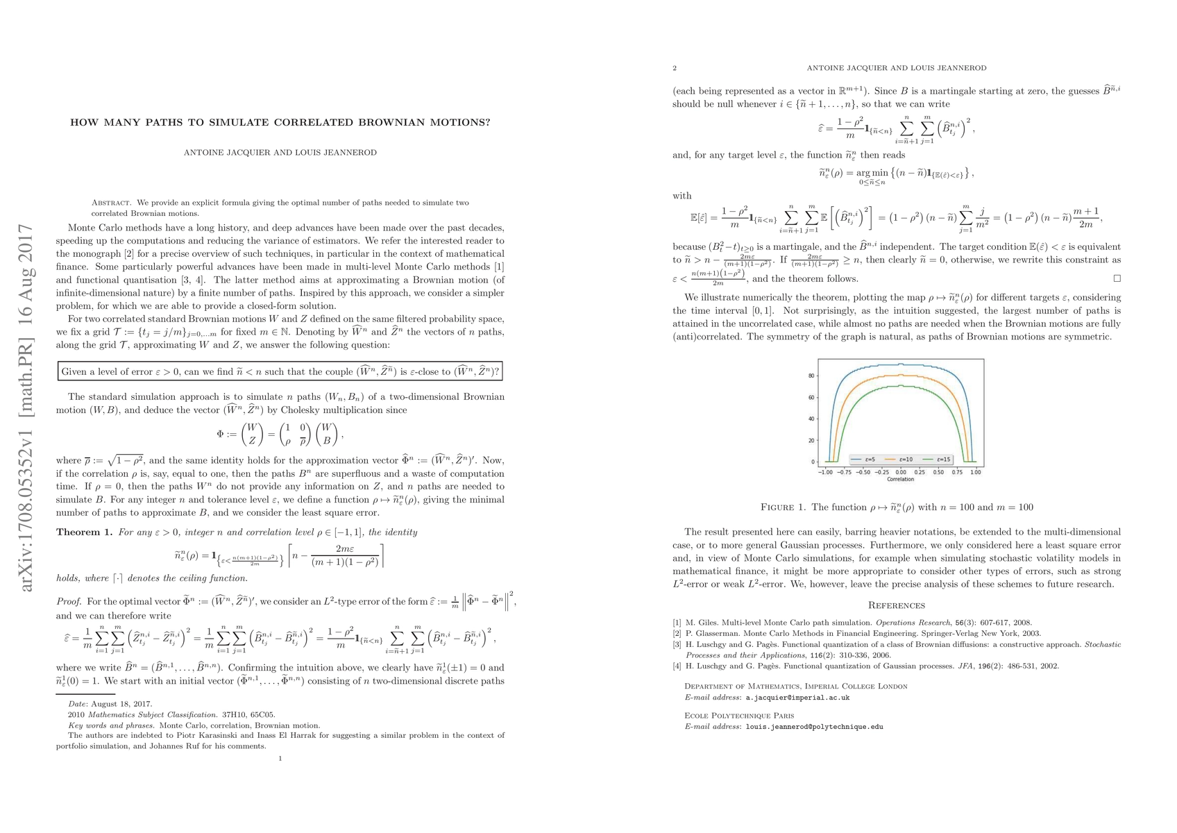 A new formula is introduced to determine the optimal number of paths needed to simulate two correlated Brownian motions for accurate modeling in finance and other fields.