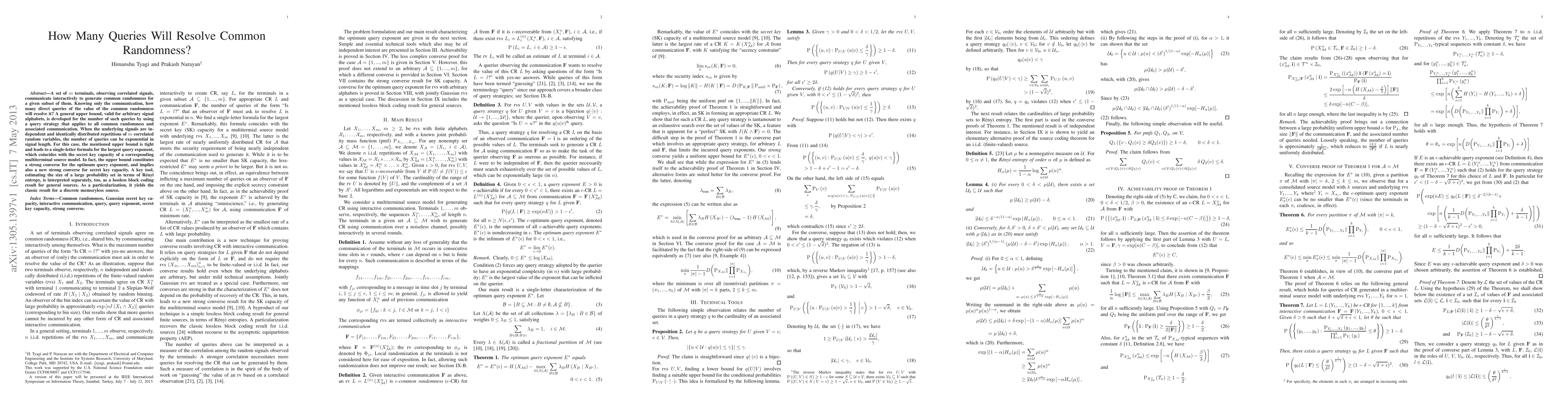 A set of m terminals, observing correlated signals, communicate interactively to generate common randomness for a given subset of them. Knowing only the communication, how many direct queries of the value of the common randomness will resolve it? A general upper bound, valid for arbitrary signal alphabets, is developed for the number of such queries by using a query strategy that applies to all common randomness and associated communication. When the underlying signals are independent and identically distributed repetitions of m correlated random variables, the number of queries can be exponential in signal length. For this case, the mentioned upper bound is tight and leads to a single-letter formula for the largest query exponent, which coincides with the secret key capacity of a corresponding multiterminal source model. In fact, the upper bound constitutes a strong converse for the optimum query exponent, and implies also a new strong converse for secret key capacity. A key tool, estimating the size of a large probability set in terms of Renyi entropy, is interpreted separately, too, as a lossless block coding result for general sources. As a particularization, it yields the classic result for a discrete memoryless source.