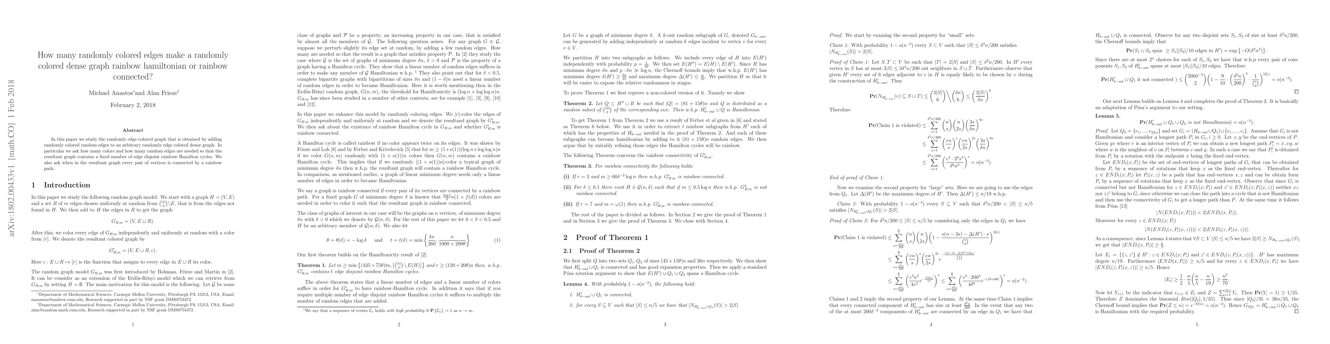 The paper introduces new claims and lemmas to prove connectivity and Hamiltonicity in randomly colored dense graphs, extending previous work on random edge additions to colored graphs.