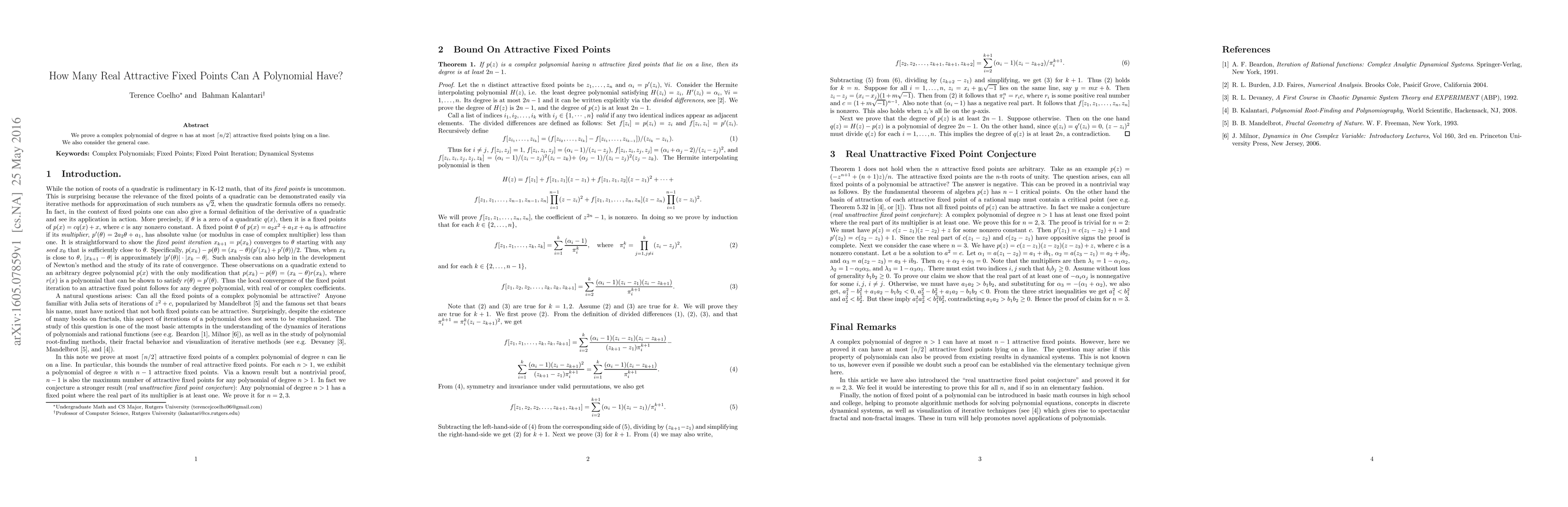 A complex polynomial of degree $n$ has at most $rac{n}{2}$ attractive fixed points lying on a line, according to the paper.