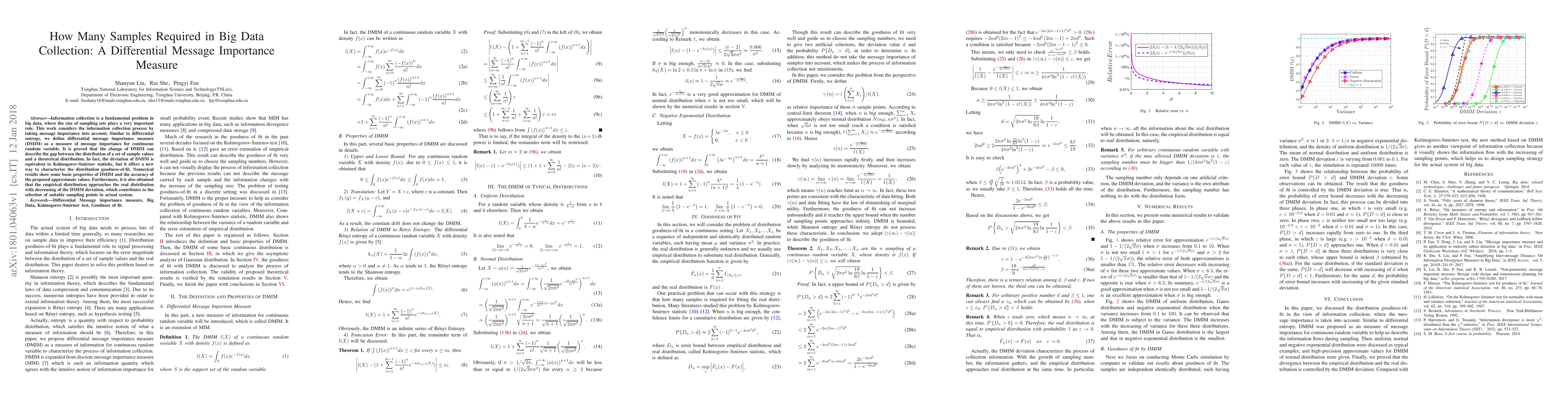 This paper introduces the Differential Message Importance Measure (DMIM) to assess the importance of messages in big data collection, demonstrating its utility in evaluating the fit of sample distributions to theoretical distributions. The study shows that minimizing DMIM deviation aids in selecting optimal sampling points, thereby improving data collection accuracy.