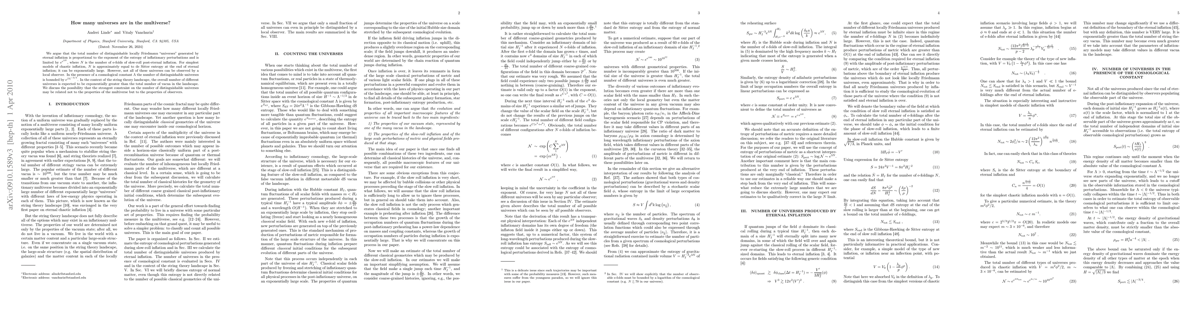 This paper explores the number of distinguishable universes in the multiverse, arguing that it is proportional to the entropy of inflationary perturbations and bounded by e^{e^{3 N}}, where N is the number of e-folds of inflation. It suggests that the number of observable universes may be constrained by cosmological constants and properties of observers rather than multiverse properties.