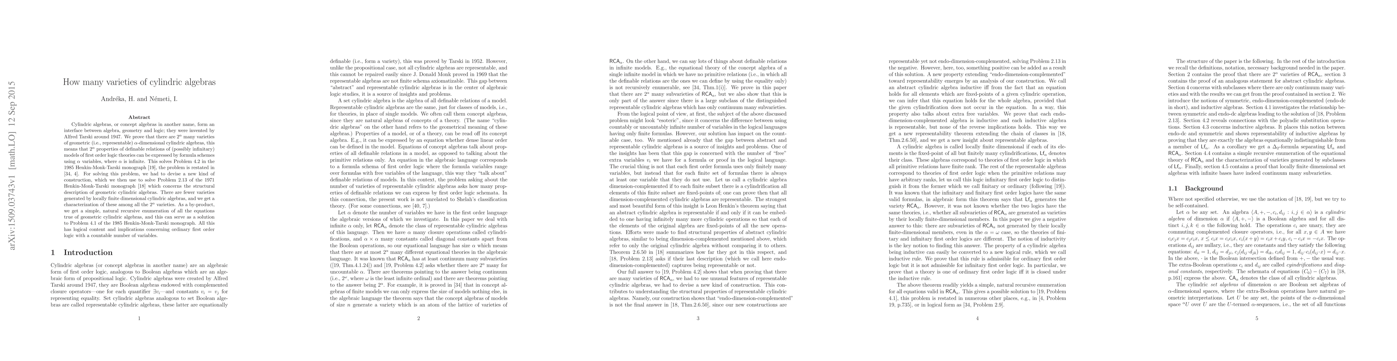 This paper proves that there are 2^α varieties of geometric α-dimensional cylindric algebras, solving a longstanding problem in the Henkin-Monk-Tarski monograph. The study also characterizes fewer varieties generated by locally finite dimensional cylindric algebras and provides a recursive enumeration of all equations true for these algebras.