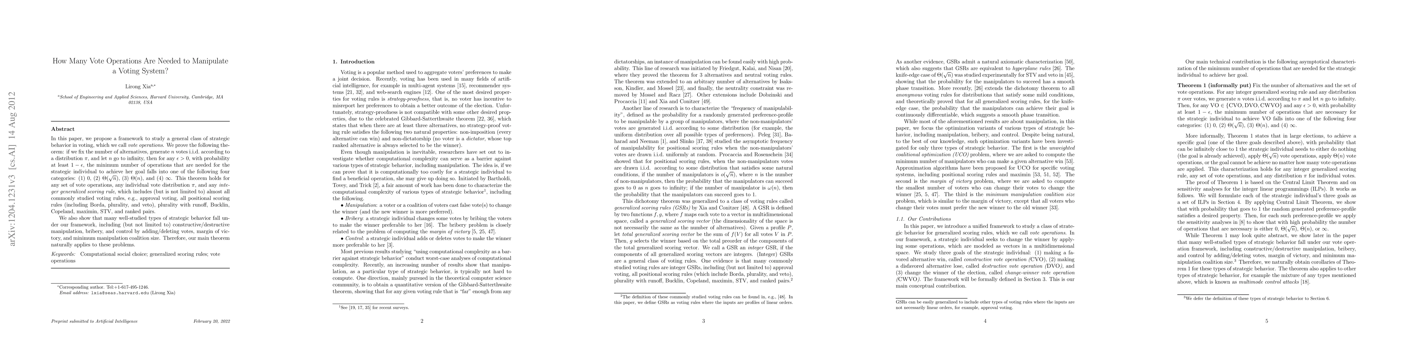 This paper introduces a framework for analyzing strategic behaviors in voting systems termed "vote operations," proving that the minimum number of operations needed to manipulate the system falls into four categories: 0, Θ(√n), Θ(n), or ∞, as n approaches infinity. The findings apply broadly to various voting rules and types of strategic behaviors.