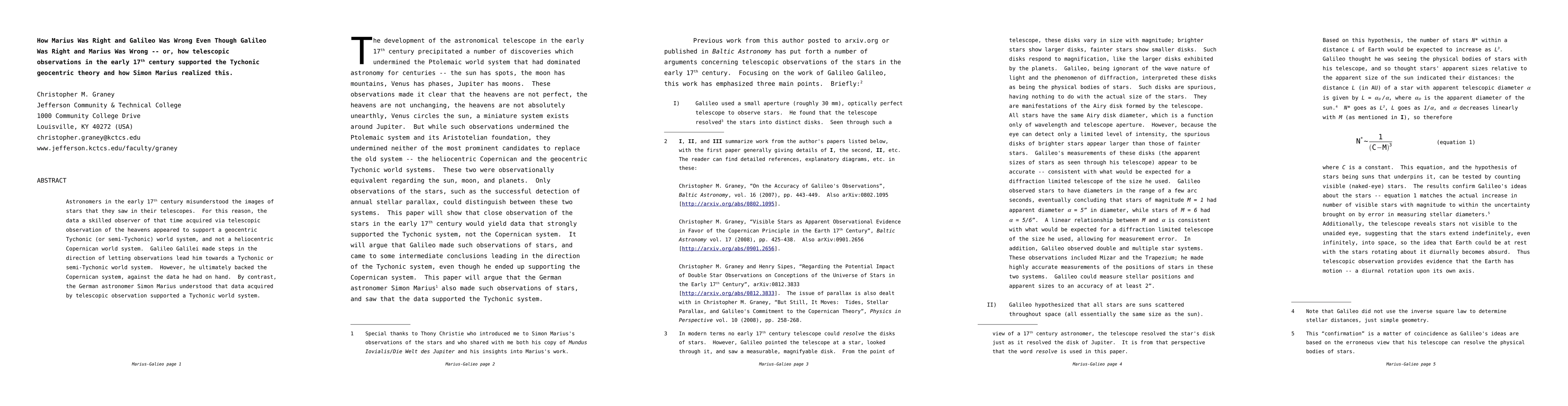 Astronomers in the early 17th century misunderstood the images of stars that they saw in their telescopes. For this reason, the data a skilled observer of that time acquired via telescopic observation of the heavens appeared to support a geocentric Tychonic (or semi-Tychonic) world system, and not a heliocentric Copernican world system. Galileo Galilei made steps in the direction of letting observations lead him towards a Tychonic or semi-Tychonic world system. However, he ultimately backed the Copernican system, against the data he had on hand. By contrast, the German astronomer Simon Marius understood that data acquired by telescopic observation supported a Tychonic world system.