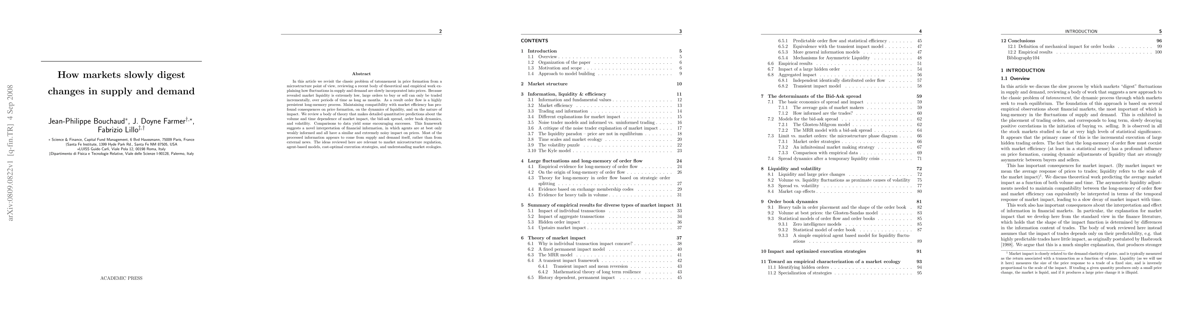 In this article we revisit the classic problem of tatonnement in price formation from a microstructure point of view, reviewing a recent body of theoretical and empirical work explaining how fluctuations in supply and demand are slowly incorporated into prices. Because revealed market liquidity is extremely low, large orders to buy or sell can only be traded incrementally, over periods of time as long as months. As a result order flow is a highly persistent long-memory process. Maintaining compatibility with market efficiency has profound consequences on price formation, on the dynamics of liquidity, and on the nature of impact. We review a body of theory that makes detailed quantitative predictions about the volume and time dependence of market impact, the bid-ask spread, order book dynamics, and volatility. Comparisons to data yield some encouraging successes. This framework suggests a novel interpretation of financial information, in which agents are at best only weakly informed and all have a similar and extremely noisy impact on prices. Most of the processed information appears to come from supply and demand itself, rather than from external news. The ideas reviewed here are relevant to market microstructure regulation, agent-based models, cost-optimal execution strategies, and understanding market ecologies.