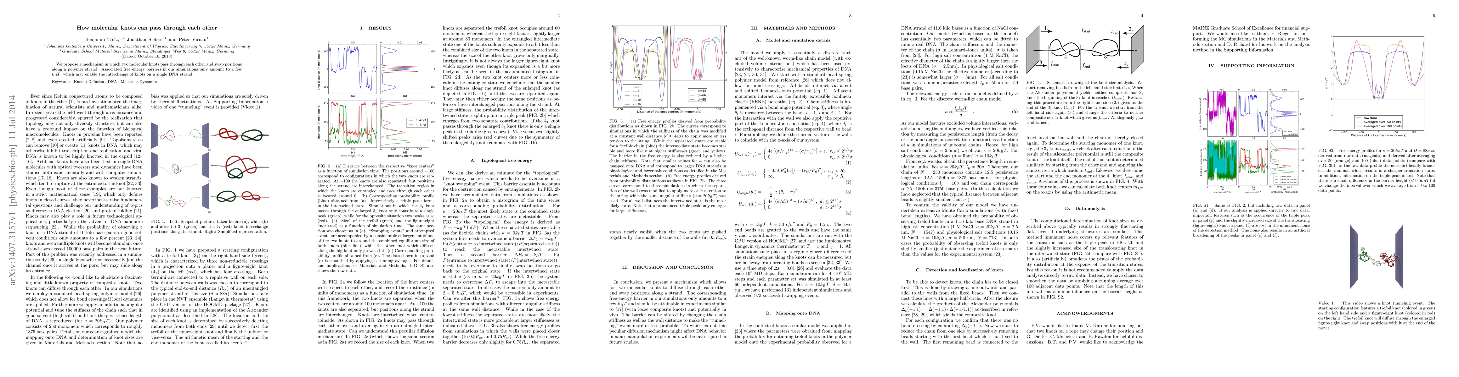 Research proposes a mechanism for molecular knots to pass through each other on a single DNA strand, enabling knot exchange with low free energy barriers.