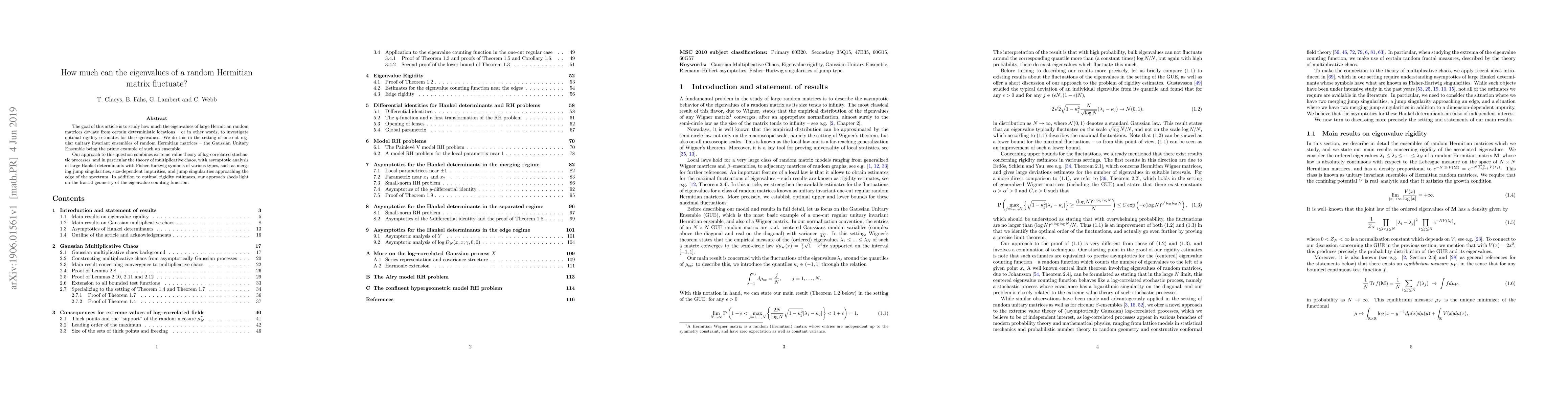 This paper investigates the fluctuation of eigenvalues in large Hermitian random matrices, focusing on optimal rigidity estimates within one-cut ensembles like the Gaussian Unitary Ensemble. It employs extreme value theory and asymptotic analysis of Hankel determinants to explore the fractal geometry of the eigenvalue counting function.