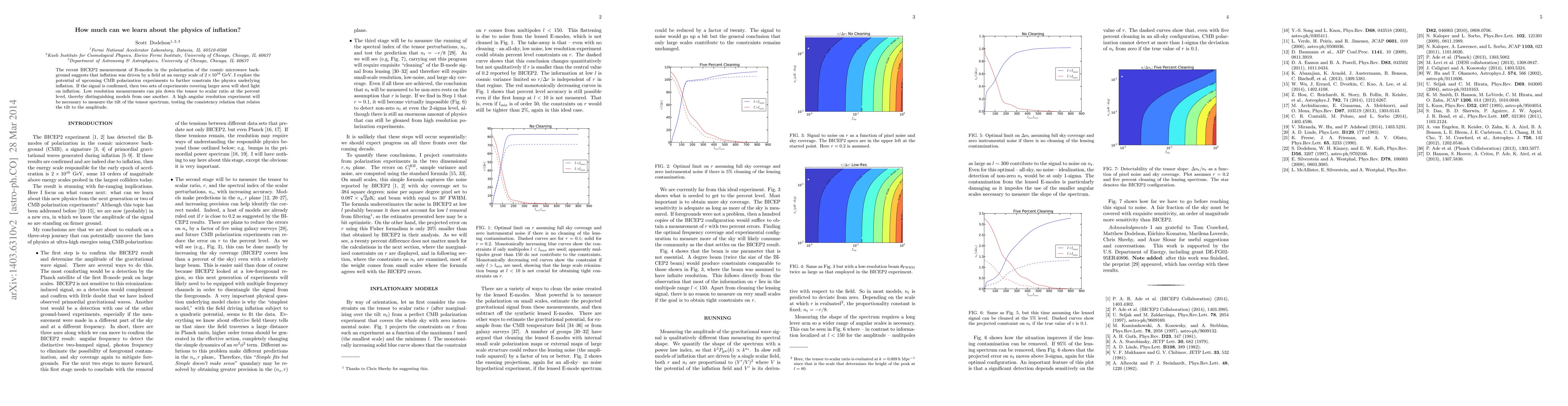 This paper examines the implications of the BICEP2 measurement of B-modes in the cosmic microwave background, suggesting inflation at an energy scale of $2\times 10^{16}$ GeV. It explores how future CMB polarization experiments can further constrain the physics of inflation, with low resolution measurements potentially distinguishing between models and high resolution experiments testing the tilt of the tensor spectrum.