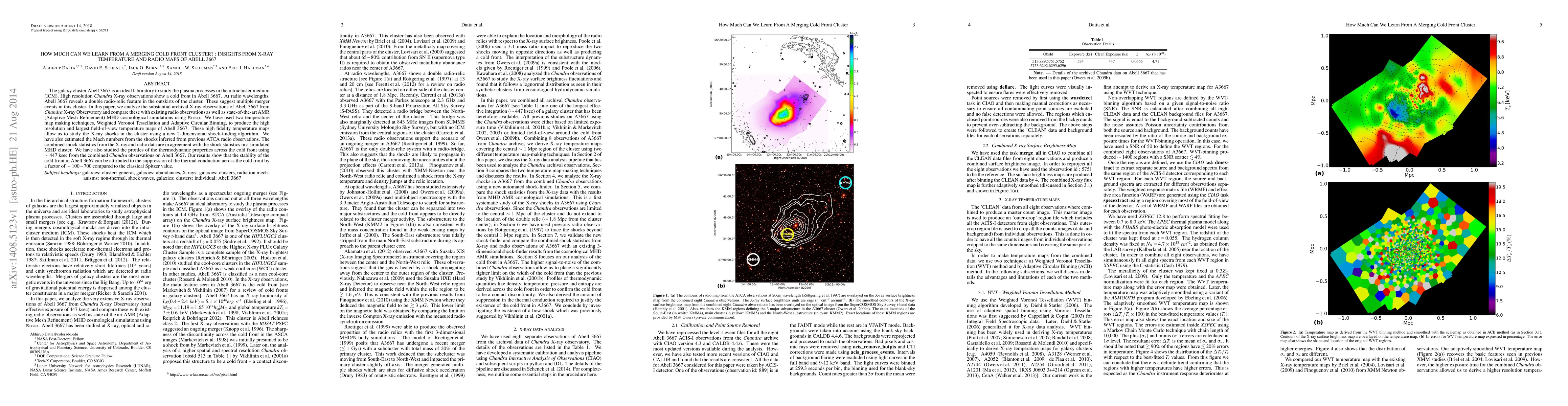 This paper analyzes the merging cold front cluster Abell 3667 using high-resolution Chandra X-ray and radio observations, revealing insights into plasma processes and shock dynamics. The study finds that the cold front's stability is due to significantly reduced thermal conduction, aligning with MHD simulation results.