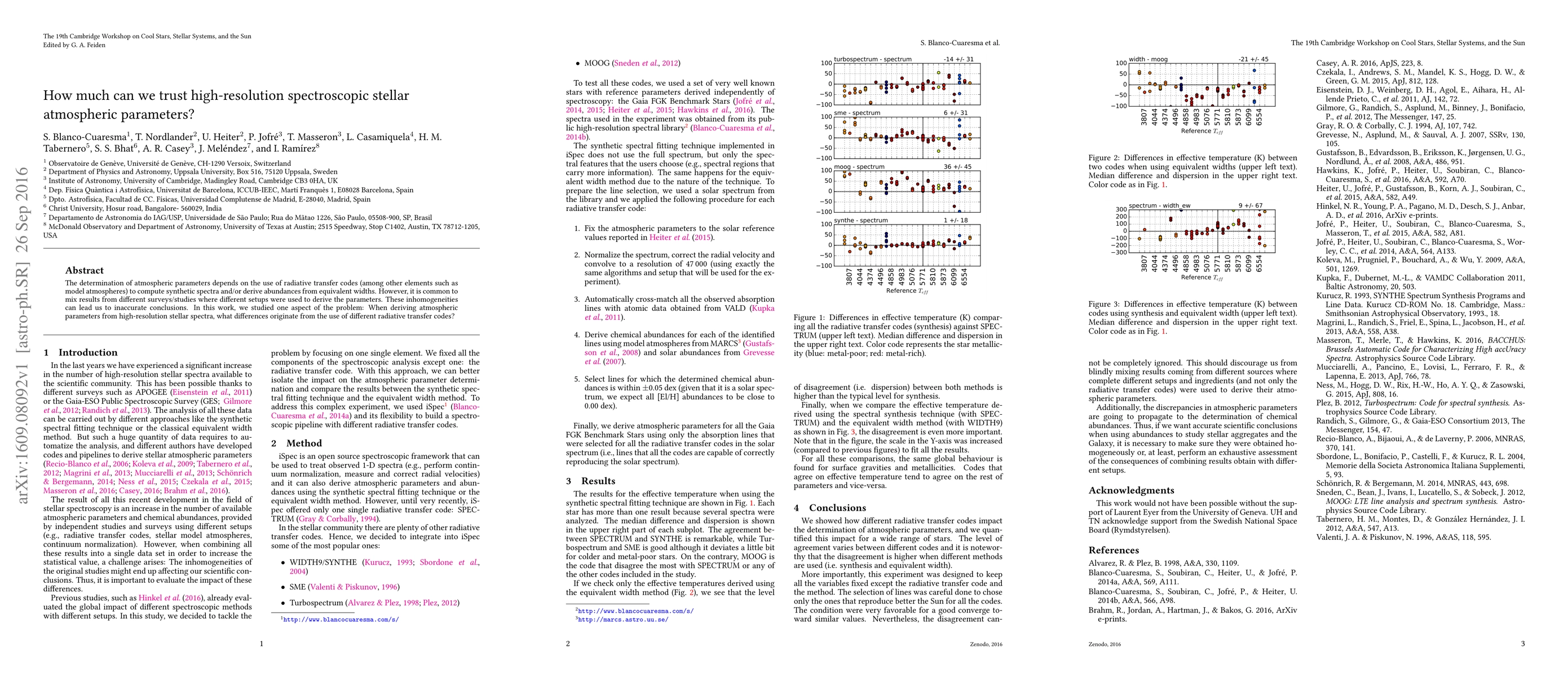 This paper investigates the discrepancies in atmospheric parameters derived from high-resolution stellar spectra due to the use of different radiative transfer codes, highlighting the potential inhomogeneities and inaccuracies that arise from mixing results from various studies.