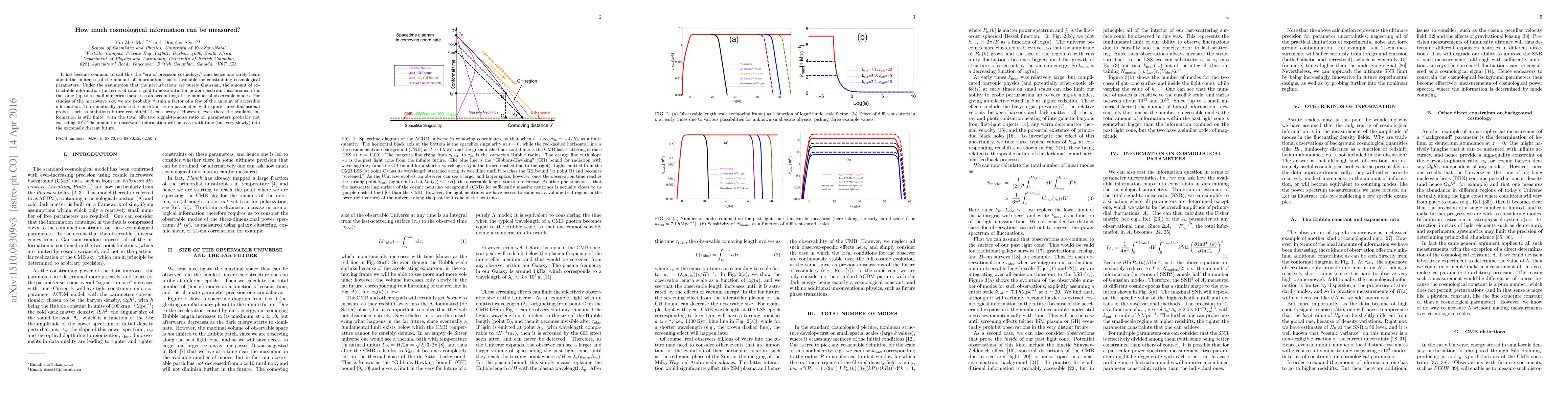 This paper discusses the finite amount of cosmological information available for constraining parameters, noting that current microwave sky studies are near the limit of accessible information. It suggests that future three-dimensional probes, like redshifted 21-cm surveys, will be necessary to significantly reduce uncertainties, yet even these will have a finite information capacity.