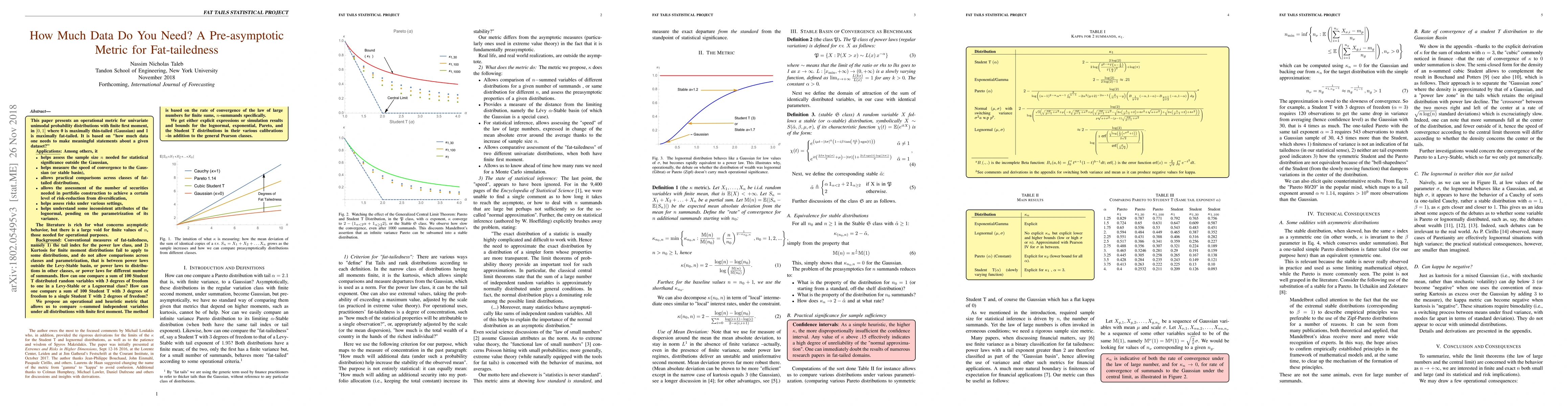 This paper introduces an operational measure of fat-tailedness to assess sample size needed for statistical significance across different distributions, including power laws and finite moment distributions.