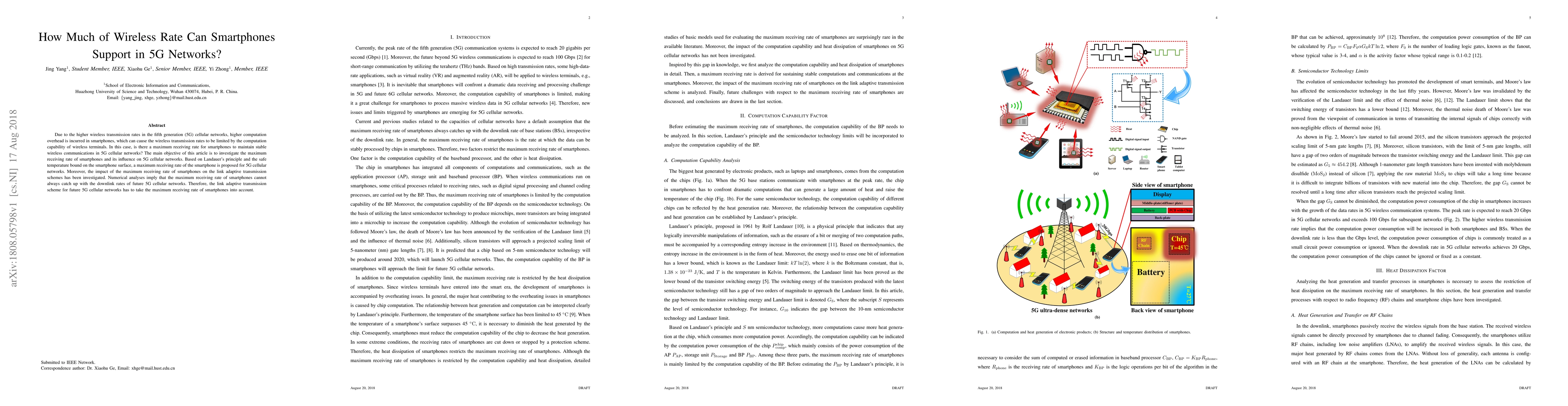 Research investigates how much 5G wireless rate smartphones can support, finding that computation overhead limits receiving rates; link adaptive transmission schemes need to account for these limitations.