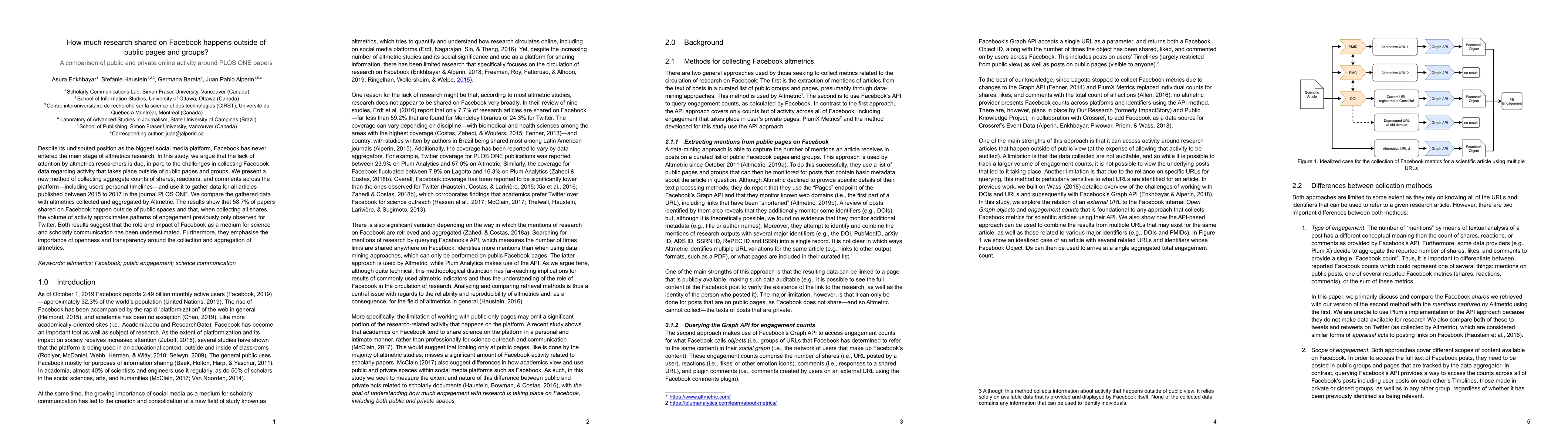 This study introduces a new method to collect Facebook data on private shares, reactions, and comments, revealing that 58.7% of PLOS ONE papers shared on Facebook occur outside public pages and groups. This suggests Facebook's underestimation in scholarly communication and highlights the need for transparent altmetric data collection.