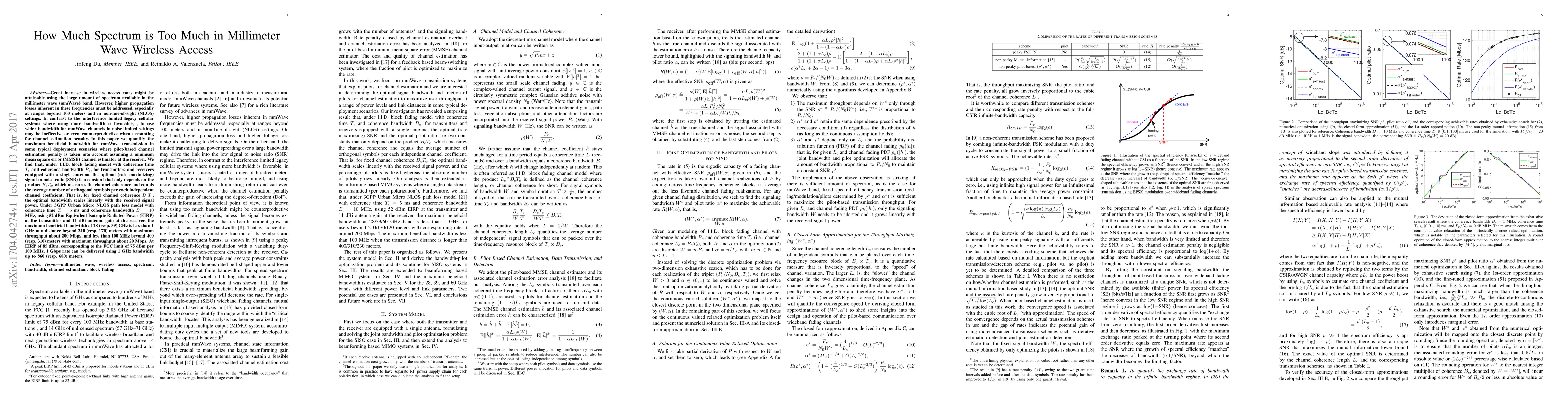 A great increase in wireless access rates might be attainable by using the large amount of spectrum available in the millimeter wave (mmWave, 30 - 300 GHz) band. However, due to higher propagation losses inherent in these frequencies, to use wider bandwidth for transmission at ranges beyond 100 meters or in non-line-of-sight (NLOS) settings may be ineffective or even counterproductive when the penalty for estimating the channel is taken into account. In this work we quantify the maximum beneficial bandwidth for mmWave transmission in some typical deployment scenarios which use pilot-based channel estimation and assume a minimum mean square error (MMSE) channel estimator at the receiver. We find that for an I.I.D. block fading model with coherence time $T_c$ and coherence bandwidth $B_c$, for transmitters and receivers equipped with a single antenna, the optimal (rate-maximizing) signal-to-noise-ratio is a constant that only depends on the product $B_cT_c$, which measures the channel coherence and equals the average number of orthogonal symbols per each independent channel coefficient. That is, for fixed channel coherence, the optimal bandwidth scales linearly with the received signal power. Under some typical deployment scenarios with both transmit and receive side beamforming, 1 GHz bandwidth can be too much.