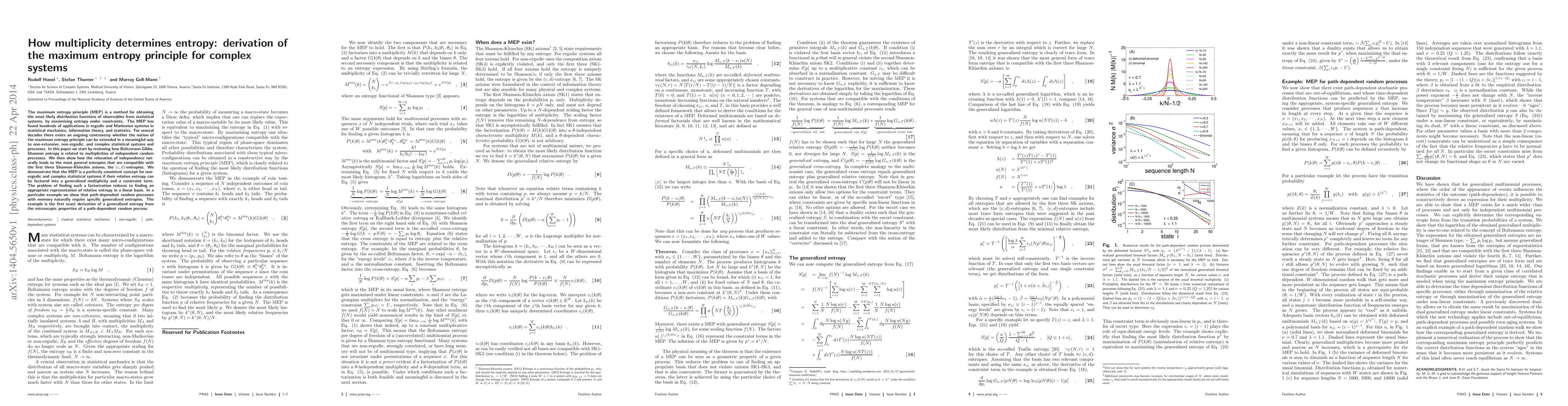 This paper explores the extension of the maximum entropy principle (MEP) to complex, non-ergodic systems by linking entropy to multiplicities in random processes. It demonstrates that MEP remains valid if relative entropy can be decomposed into a generalized multiplicity and a constraint term, providing an exact derivation of generalized entropy for path-dependent random processes.