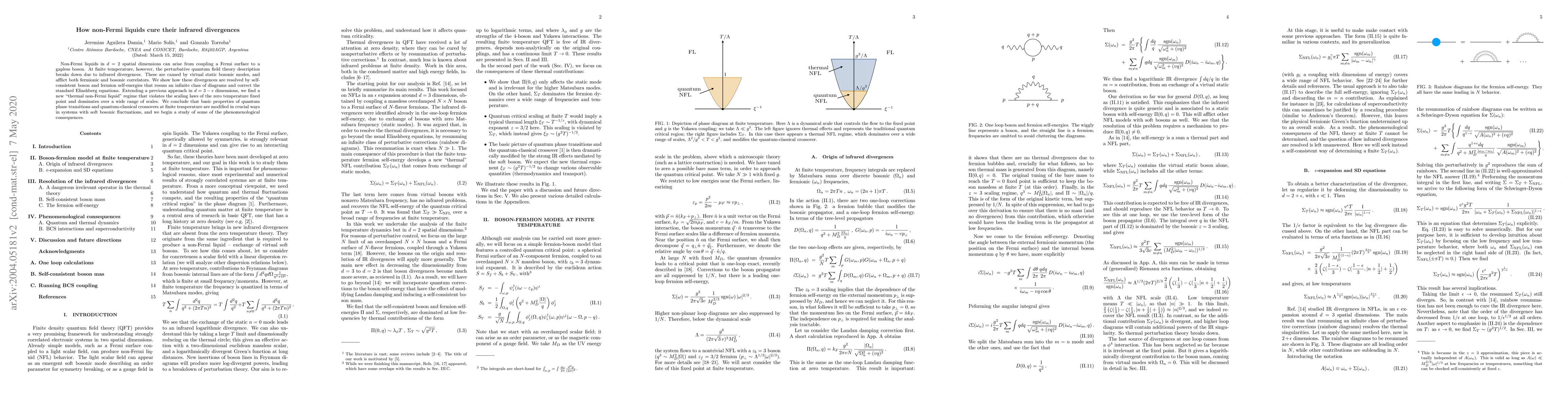 Non-Fermi liquids in $d=2$ spatial dimensions can arise from coupling a Fermi surface to a gapless boson. At finite temperature, however, the perturbative quantum field theory description breaks down due to infrared divergences. These are caused by virtual static bosonic modes, and afflict both fermionic and bosonic correlators. We show how these divergences are resolved by self-consistent boson and fermion self-energies that resum an infinite class of diagrams and correct the standard Eliashberg equations. Extending a previous approach in $d=3-\epsilon$ dimensions, we find a new "thermal non-Fermi liquid" regime that violates the scaling laws of the zero temperature fixed point and dominates over a wide range of scales. We conclude that basic properties of quantum phase transitions and quantum-classical crossovers at finite temperature are modified in crucial ways in systems with soft bosonic fluctuations, and we begin a study of some of the phenomenological consequences.