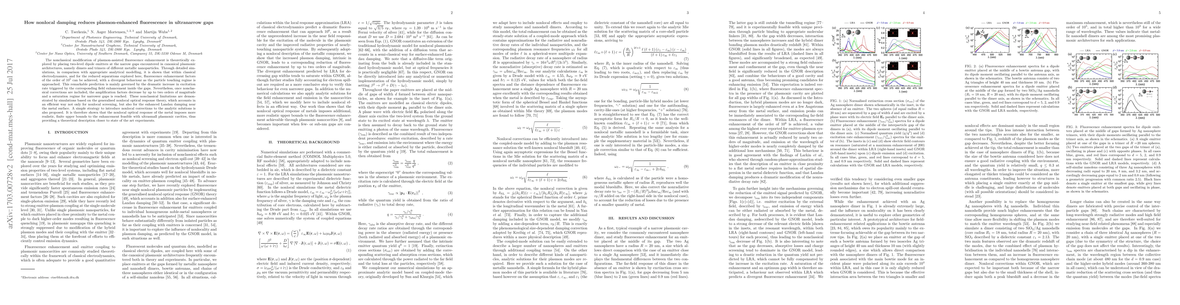 The research paper explores how nonlocal damping reduces plasmon-enhanced fluorescence in ultranarrow gaps. Simulations and analytical modeling show that while classical electrodynamics predicts fluorescence enhancement factors of up to $10^5$, nonclassical corrections, considering nonlocal screening and Landau damping, decrease these factors by up to two orders of magnitude. This reveals that nonlocal optical response of metals sets realistic limits on fluorescence enhancement in ultrasmall plasmonic cavities, aligning theoretical predictions with experimental observations.