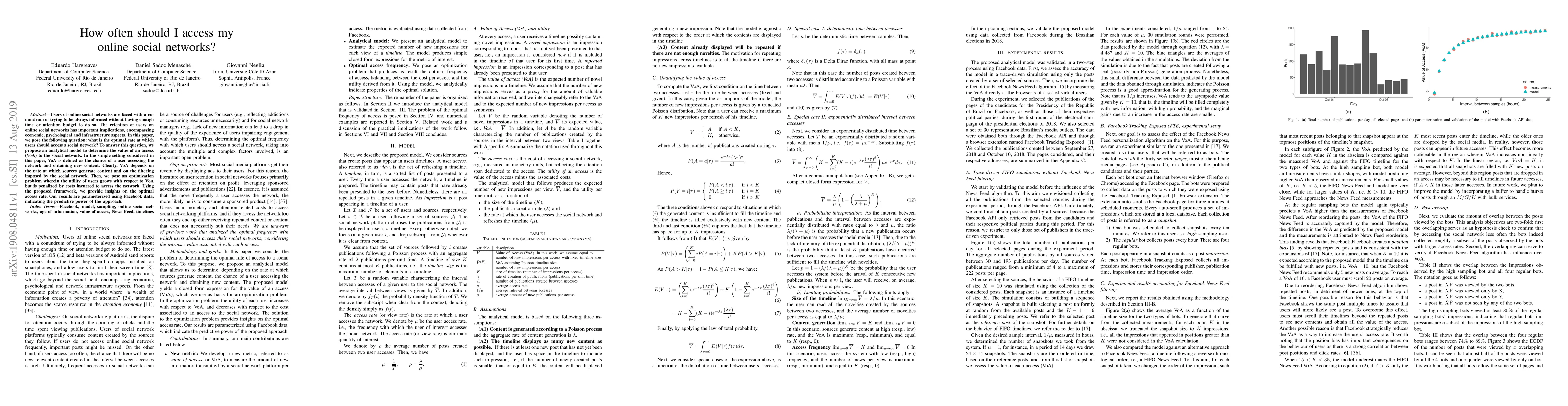 This paper proposes an analytical model to determine the optimal rate at which users should access online social networks to maximize the value of access (VoA) while minimizing access costs. The findings, parameterized with Facebook data, provide insights into balancing user engagement and resource constraints.