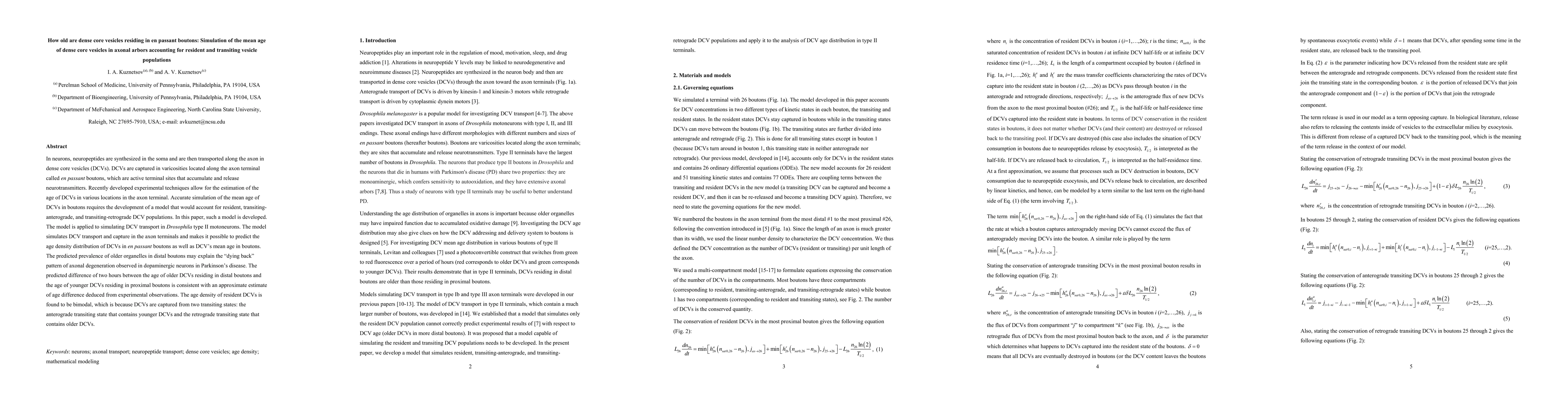 Researchers developed a model to simulate the age of dense core vesicles in en passant boutons, revealing an approximate 2-hour age difference between distal and proximal boutons that may explain axonal degeneration patterns in Parkinson's disease.