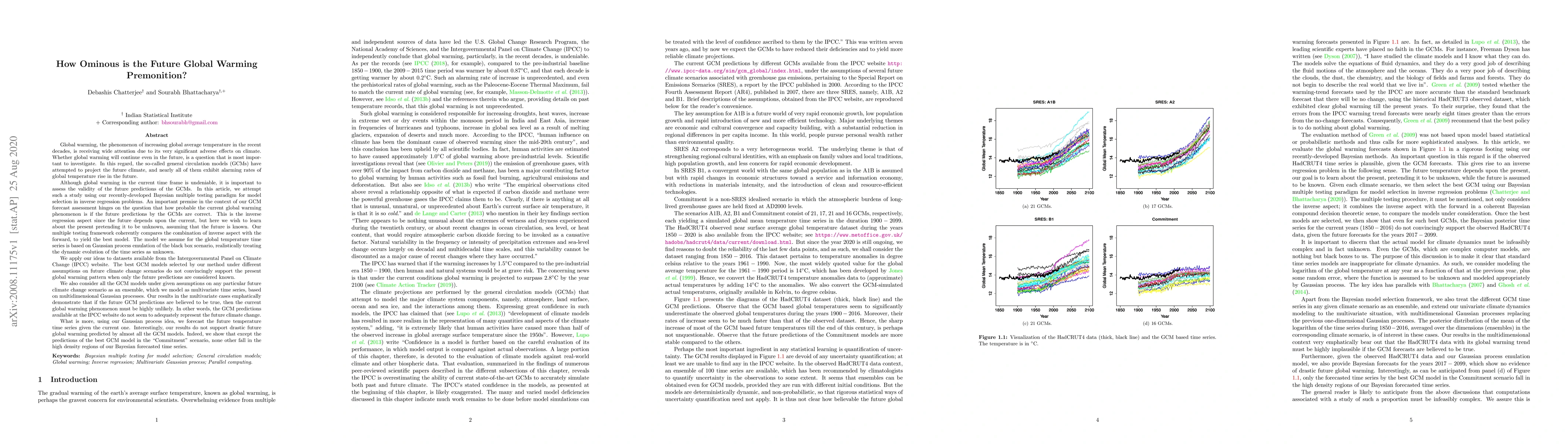 Global warming, the phenomenon of increasing global average temperature in the recent decades, is receiving wide attention due to its very significant adverse effects on climate. Whether global warming will continue even in the future, is a question that is most important to investigate. In this regard, the so-called general circulation models (GCMs) have attempted to project the future climate, and nearly all of them exhibit alarming rates of global temperature rise in the future. Although global warming in the current time frame is undeniable, it is important to assess the validity of the future predictions of the GCMs. In this article, we attempt such a study using our recently-developed Bayesian multiple testing paradigm for model selection in inverse regression problems. The model we assume for the global temperature time series is based on Gaussian process emulation of the black box scenario, realistically treating the dynamic evolution of the time series as unknown. We apply our ideas to datasets available from the Intergovernmental Panel on Climate Change (IPCC) website. The best GCM models selected by our method under different assumptions on future climate change scenarios do not convincingly support the present global warming pattern when only the future predictions are considered known. Using our Gaussian process idea, we also forecast the future temperature time series given the current one. Interestingly, our results do not support drastic future global warming predicted by almost all the GCM models.