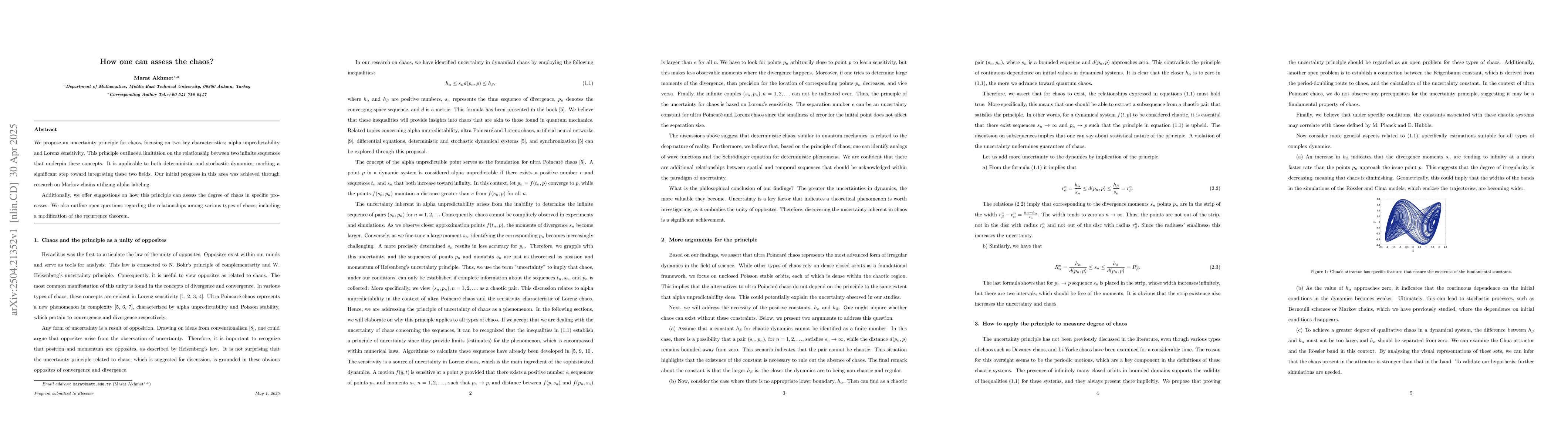 Researchers propose a new principle to assess chaos, combining two key characteristics of unpredictability and sensitivity, applicable to both deterministic and stochastic dynamics.