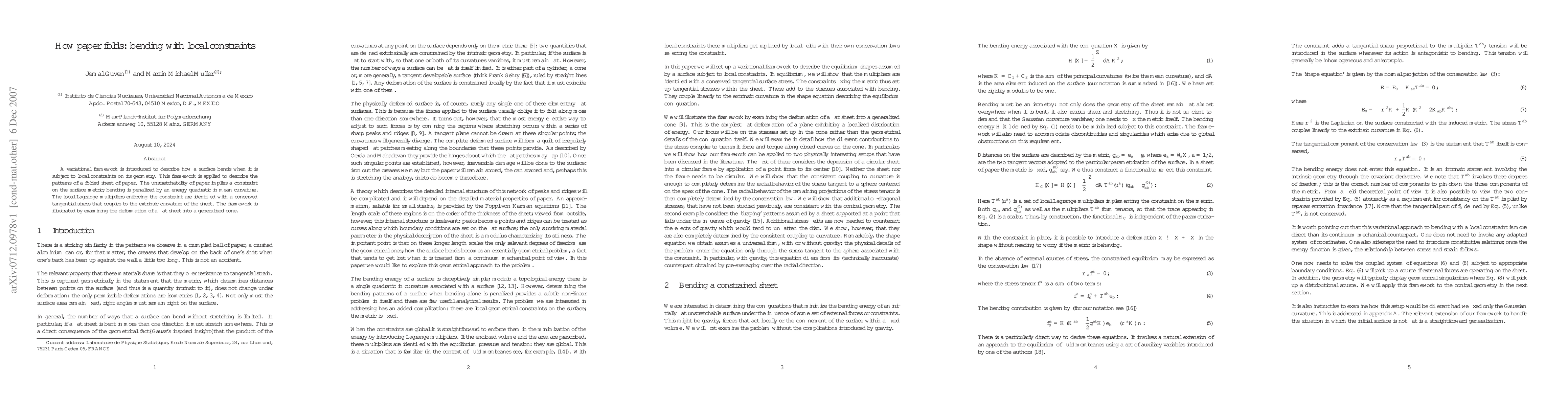 A variational framework is introduced to describe how a surface bends when it is subject to local constraints on its geometry. This framework is applied to describe the patterns of a folded sheet of paper. The unstretchability of paper implies a constraint on the surface metric; bending is penalized by an energy quadratic in mean curvature. The local Lagrange multipliers enforcing the constraint are identified with a conserved tangential stress that couples to the extrinsic curvature of the sheet. The framework is illustrated by examining the deformation of a flat sheet into a generalized cone.
