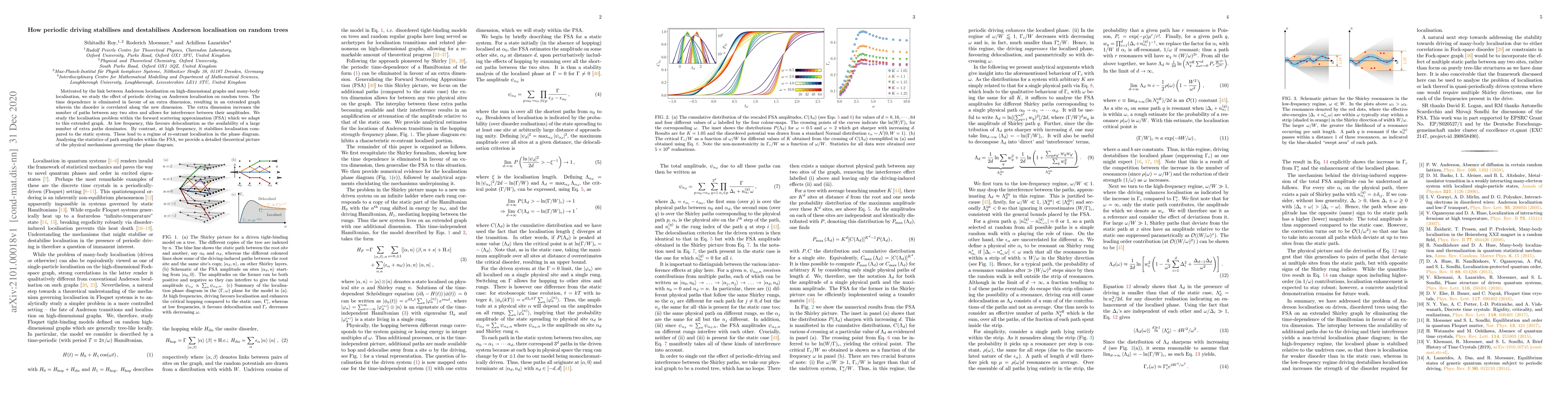 This research explores how periodic driving influences Anderson localisation on random trees, finding a regime of re-entrant localisation. At low frequency, periodic driving favours delocalisation due to increased path interference, while at high frequency, it stabilises localisation compared to static systems.