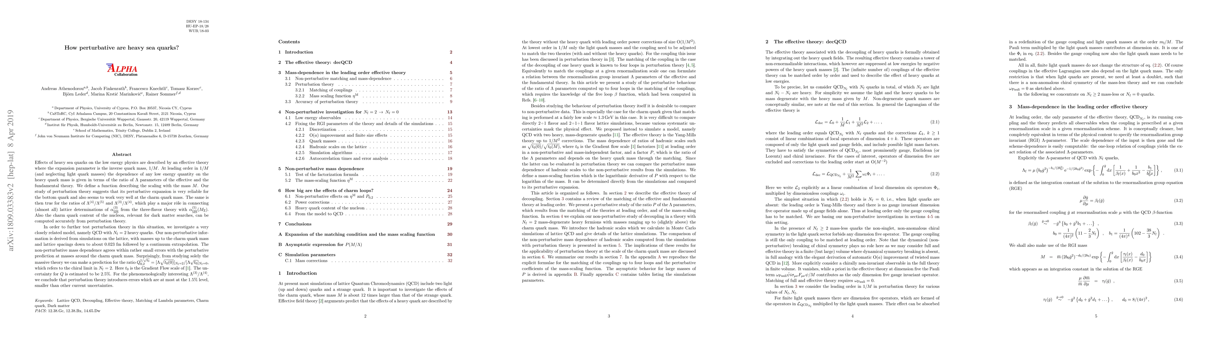 This paper investigates the perturbative reliability of heavy sea quarks in effective theories, finding that perturbation theory is highly accurate for bottom and charm quarks. It also demonstrates that perturbation theory can predict ratios like $\Lambda^{(3)}/\Lambda^{(4)}$ with errors under 1.5%, significantly smaller than other uncertainties.